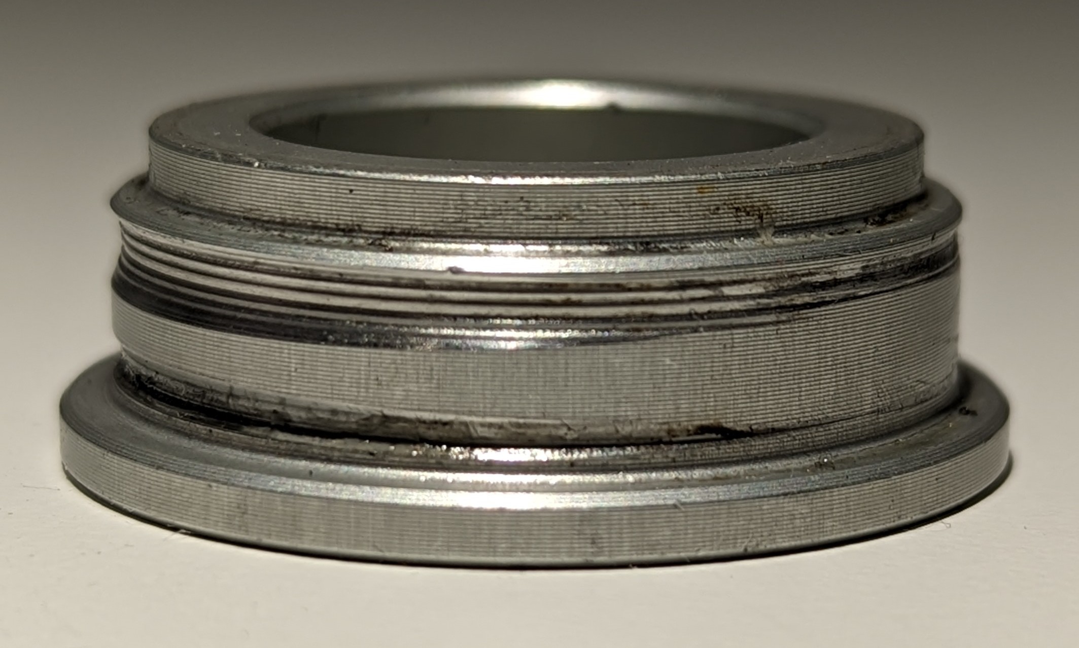 Damit ist die Buchse nicht richtig zentriert auf der Achse und das erklärt auch bei mir das unschöne Abnutzungsbild.