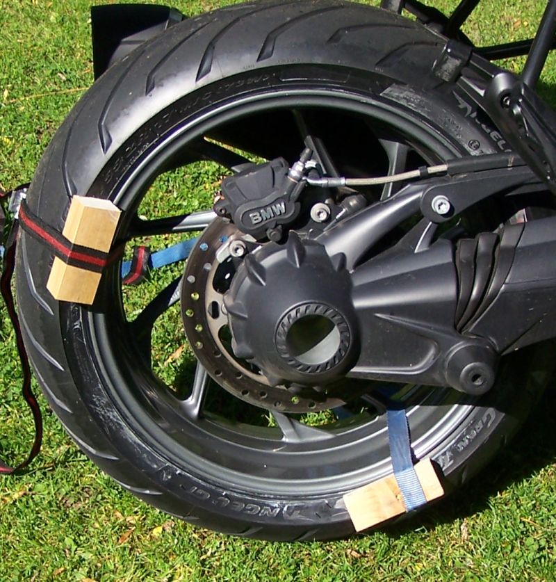 Ich nutze z. b. zwei Spanngurte mit Holzklötzen: