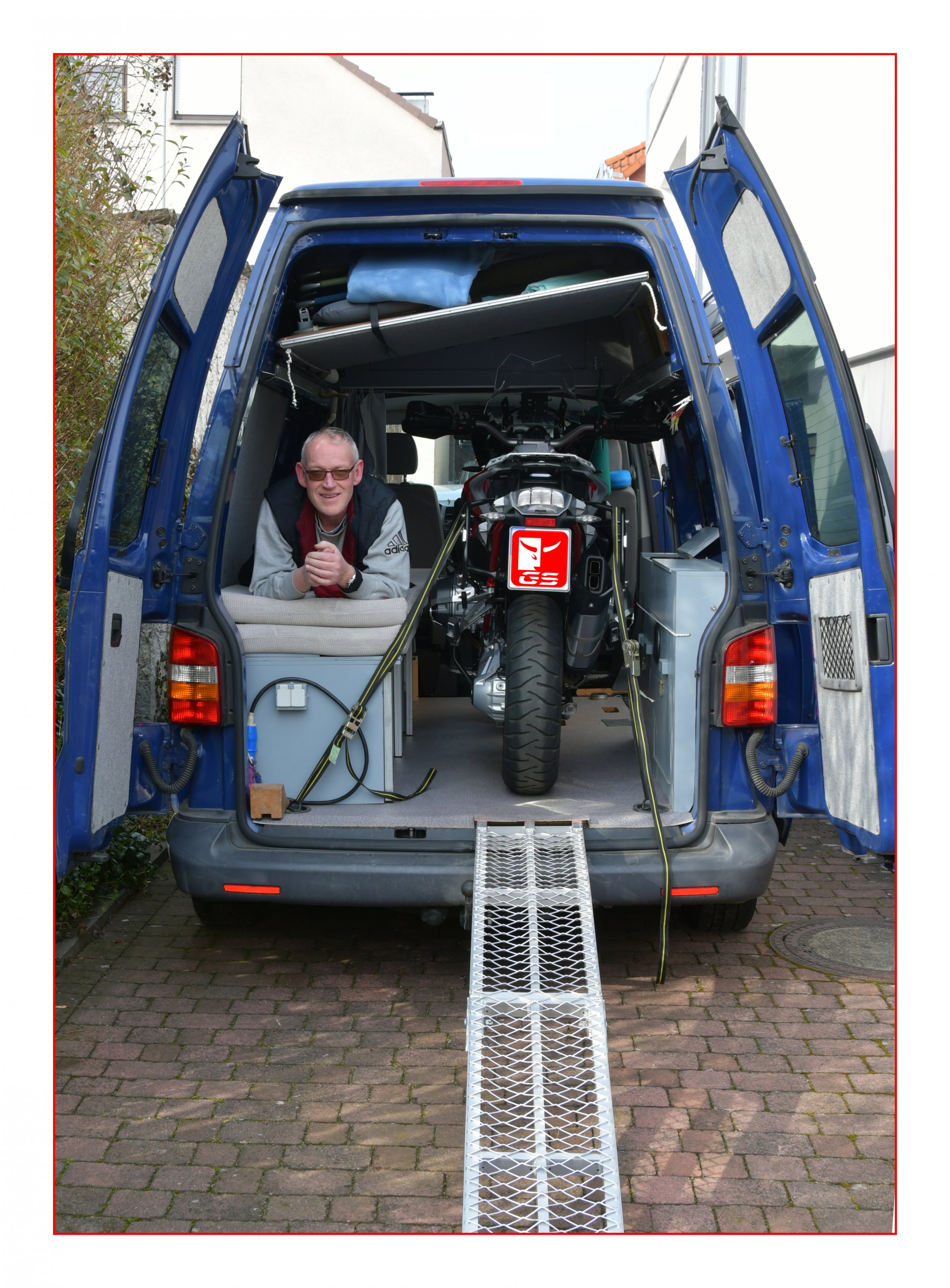 Wir transportieren unsere 1200 Gs-Adv im Ford Tourneo Custom .