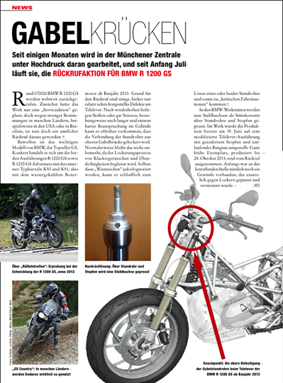 Werkstattaktion / Rückruf R1200GS Gabel