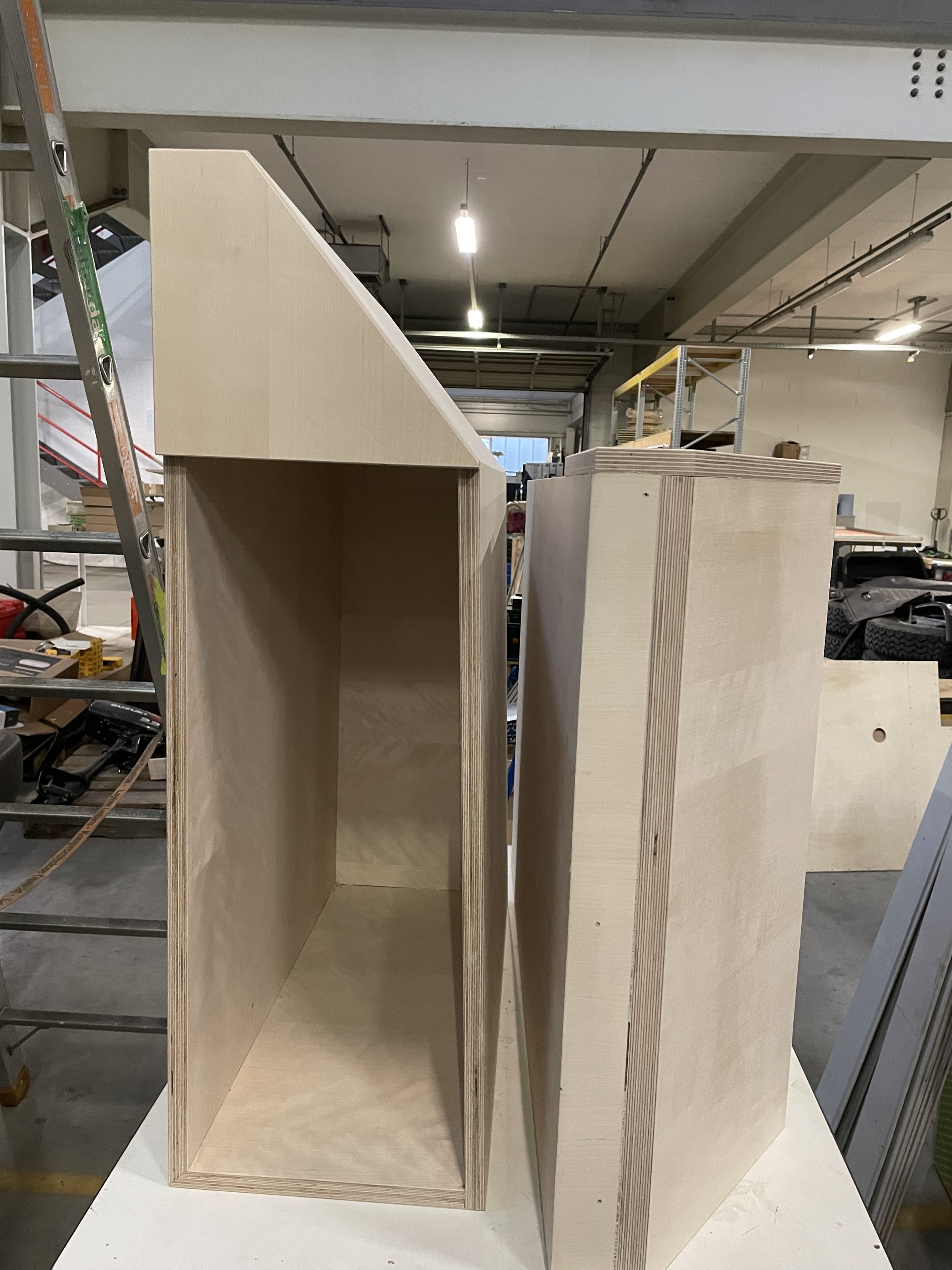 Irgendwo lässt sich bestimmt noch günstig ein gebrauchter Drehzahlmesser auftreiben…Die beiden Staukästen für den Kopfraum über Fahrer und Beifahrer sind fertig.