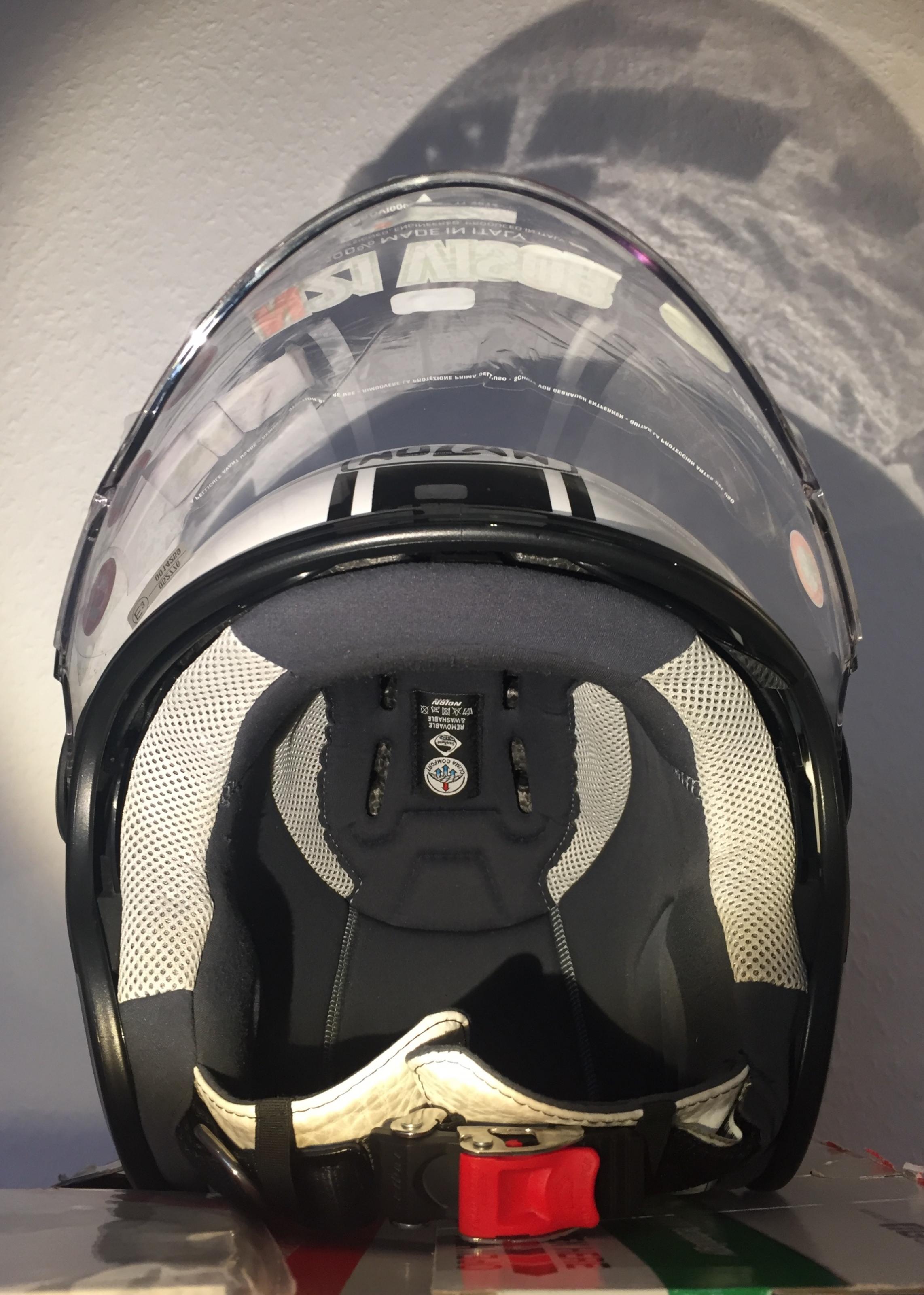 Der Helm lag die ungenutzte Zeit im der Helmtasche im Originalkarton im Schrank.