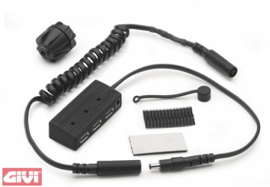 dran mit 2 ca. 1 m langen USB-Kabeln im Tankrucksack.