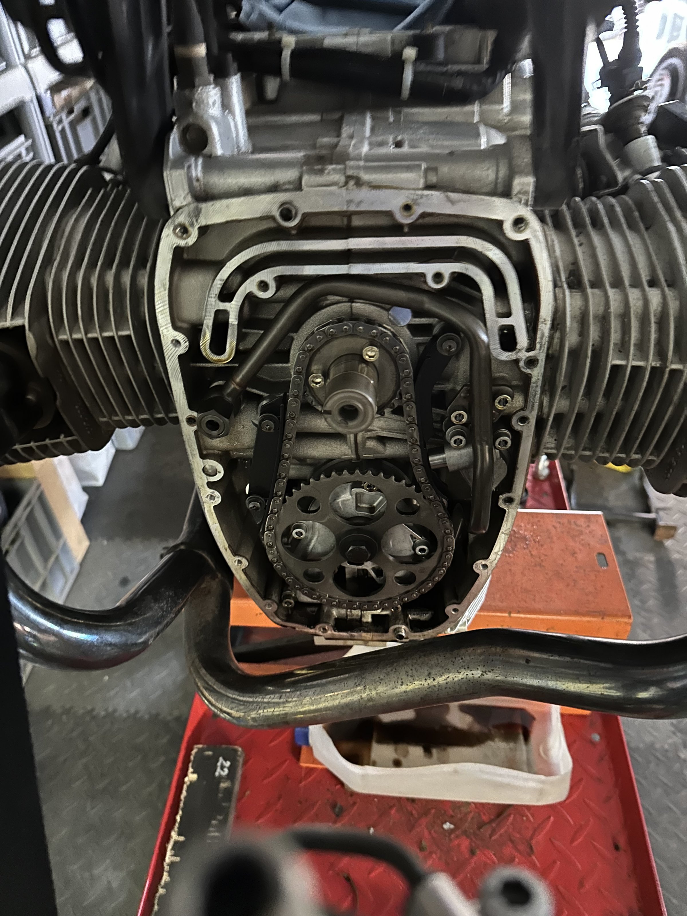 Der „Kettenkasten“ hat auch eine neue Abdichtung bekommen - für die Flanschdichtung mit DreiBond und für die Kurbelwelle mit neuem BMW-Dichtring. Diesen habe ich einmal zurückgesandt, da ich einen Fehler auf der Dichtfläche vermutete. Allerdings sieht der Dichtring aus der 2. Sendung genauso aus…