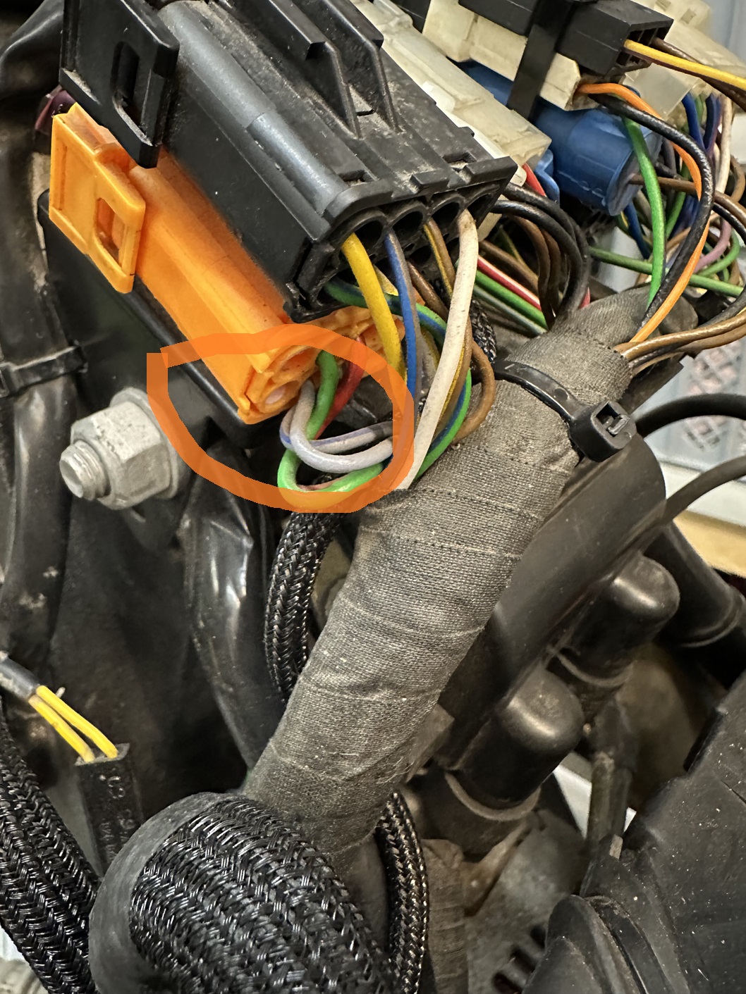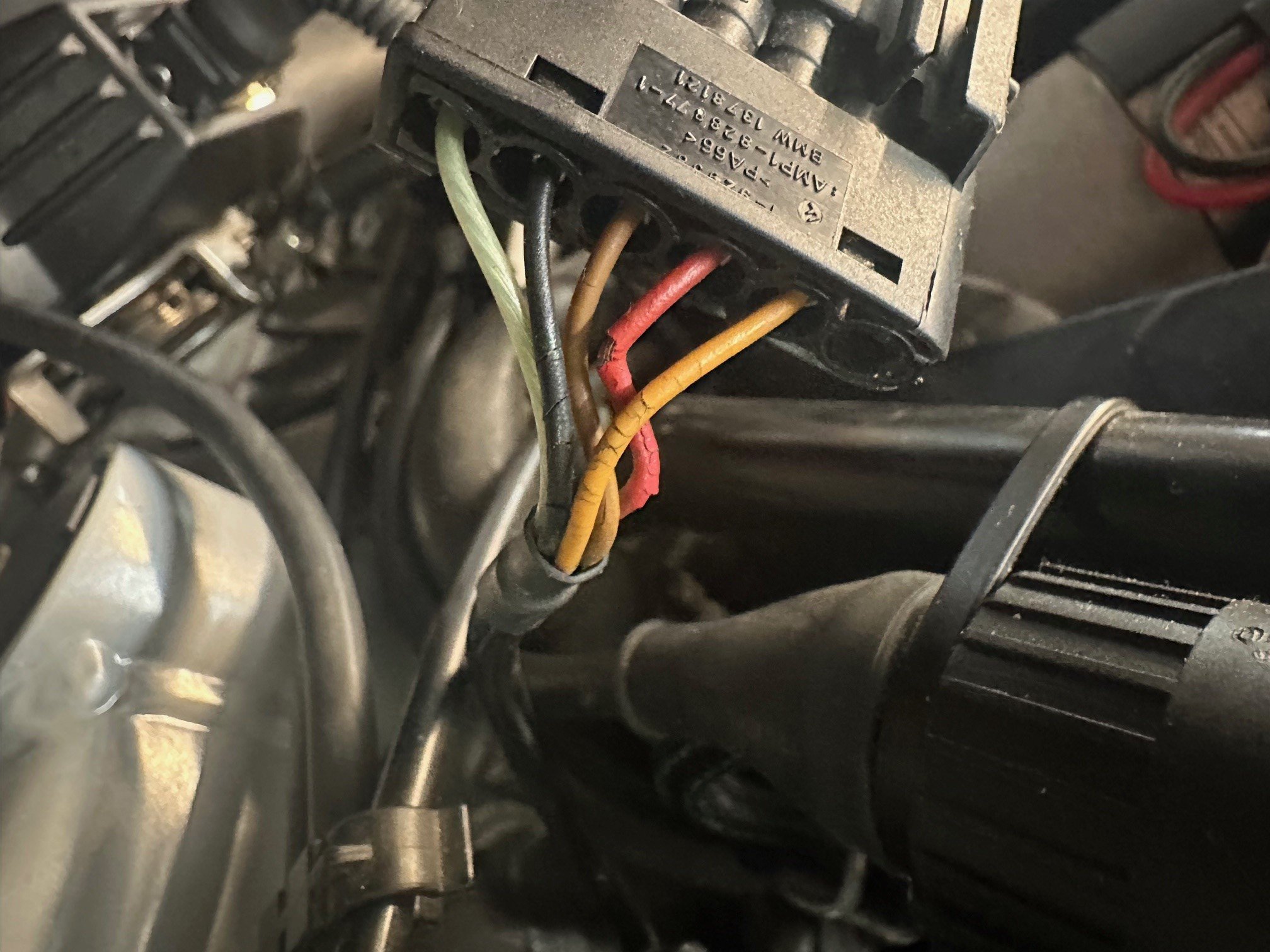 Den Stecker zur Anbindung am Fahrzeugkabelbaum konnte ich von der US-Version übernehmen. Diesen musste ich aus auspinnen und den 10-adrigen Leitungsstrang aus der R100R (der keinen Stecker mehr hatte) mit neuen weiblichen Steckhülsen vom Typ AMP Tyco RK 2,5 0,5-1,0m einpinnen.