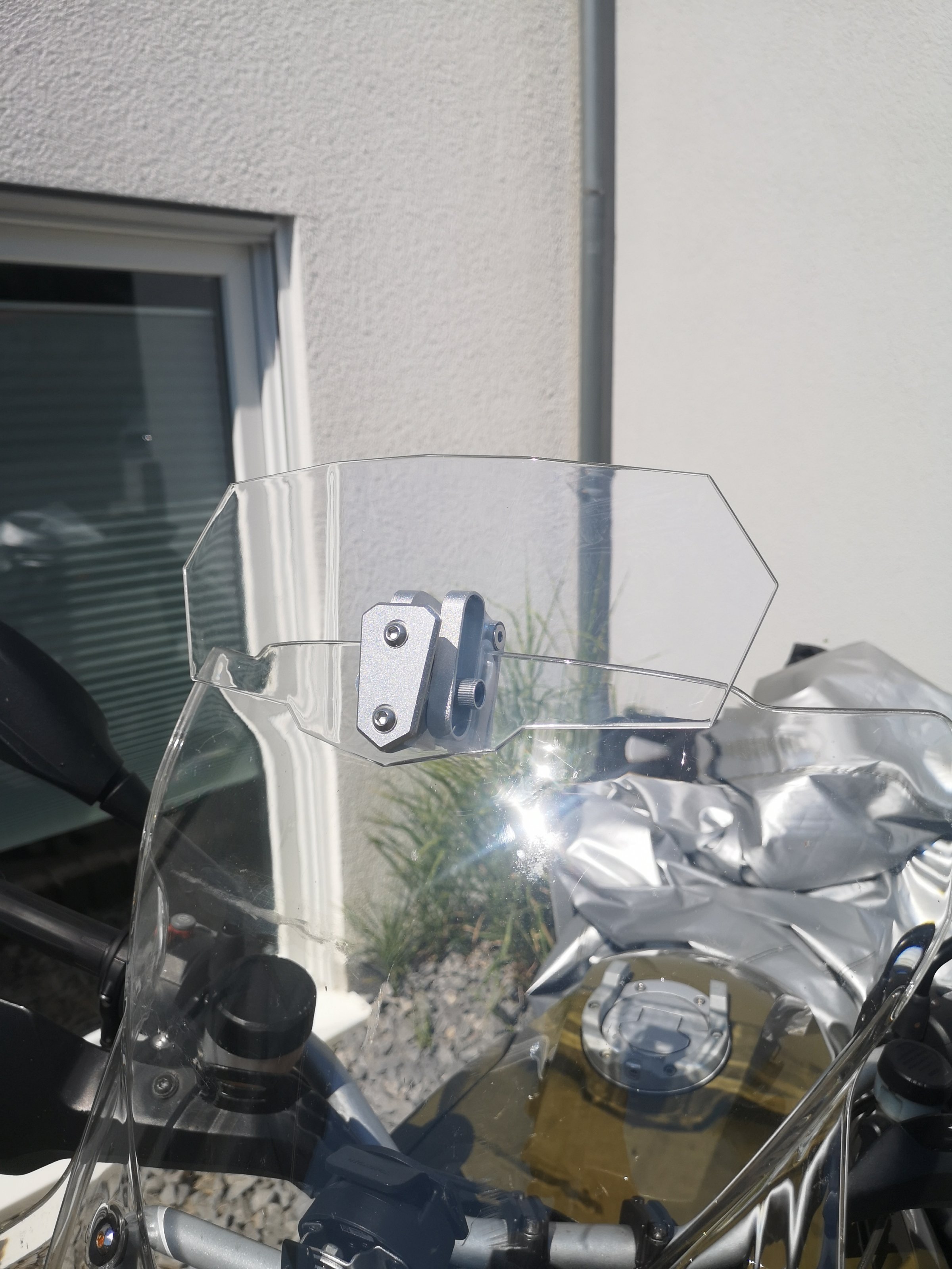 Ich hatte das Windschild schon mal demontiert und auch steiler oder flacher gestellt. Es hat mich nicht so befriedigt.