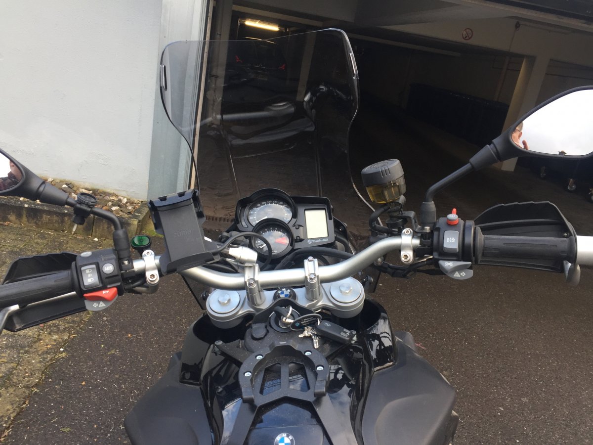 Die scheibe ist mit 42cm länge (gemessen zwischen Oberkante Scheinwerfer und Oberkante der Scheibe) deutlich länger als die original Scheiben der 650gs oder 800gs.