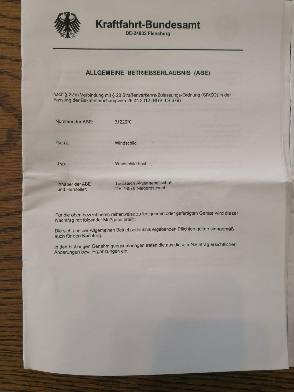 Windschild ist 05.2019 gekauft worden, Rechnung...