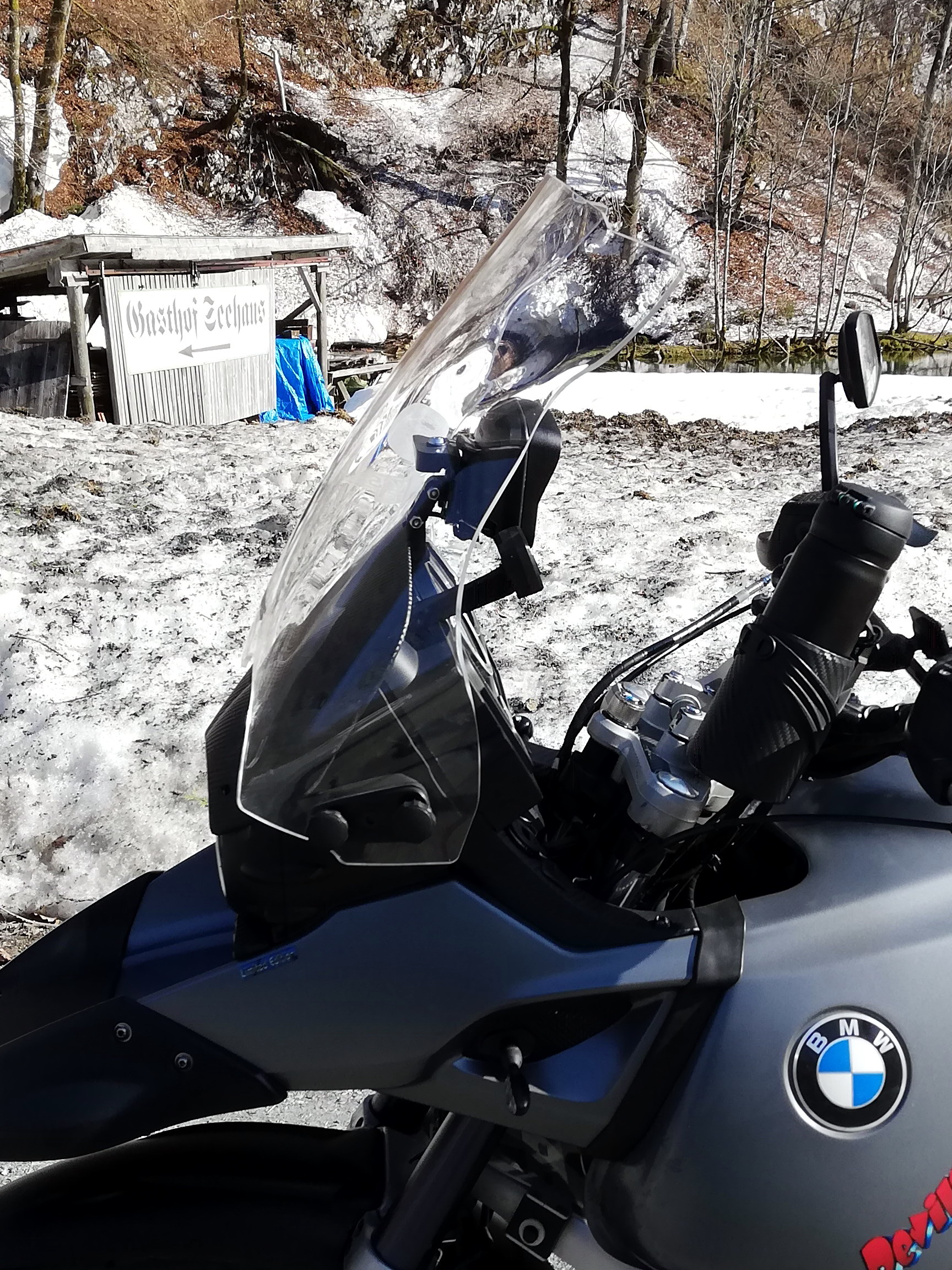 Das Original Windschild der 1150er fand ich immer schon grottenhässlich, weshalb ich schon seit Jahren eine ZTechnik-Scheibe von Louis montiert hatte: