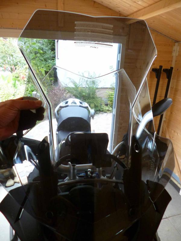 Hier nun die Bilder zur Puig-Tourenscheibe. Hab mal das Serien-Windschild dazugelegt bzw. -gehalten zum Vergleich.