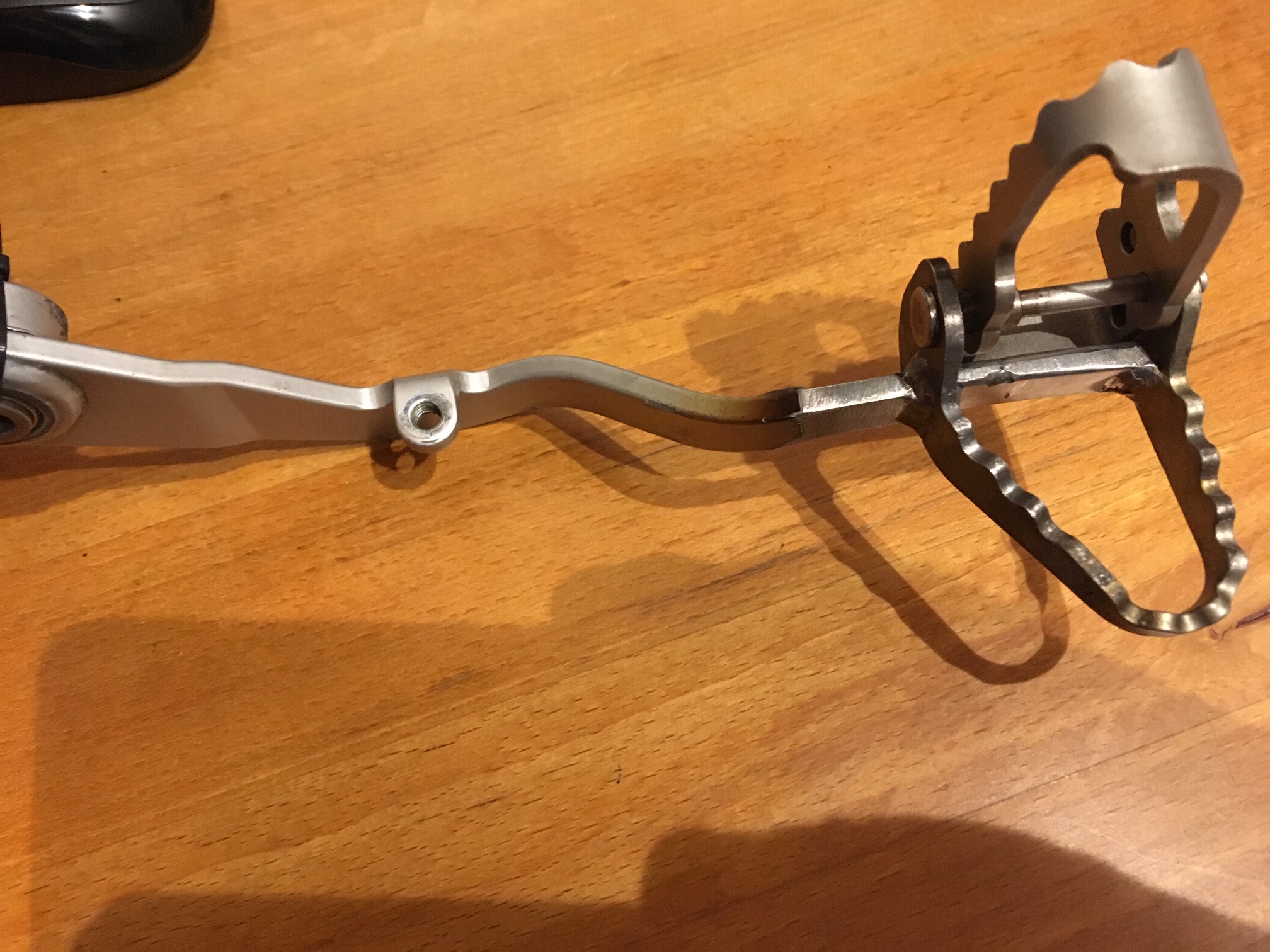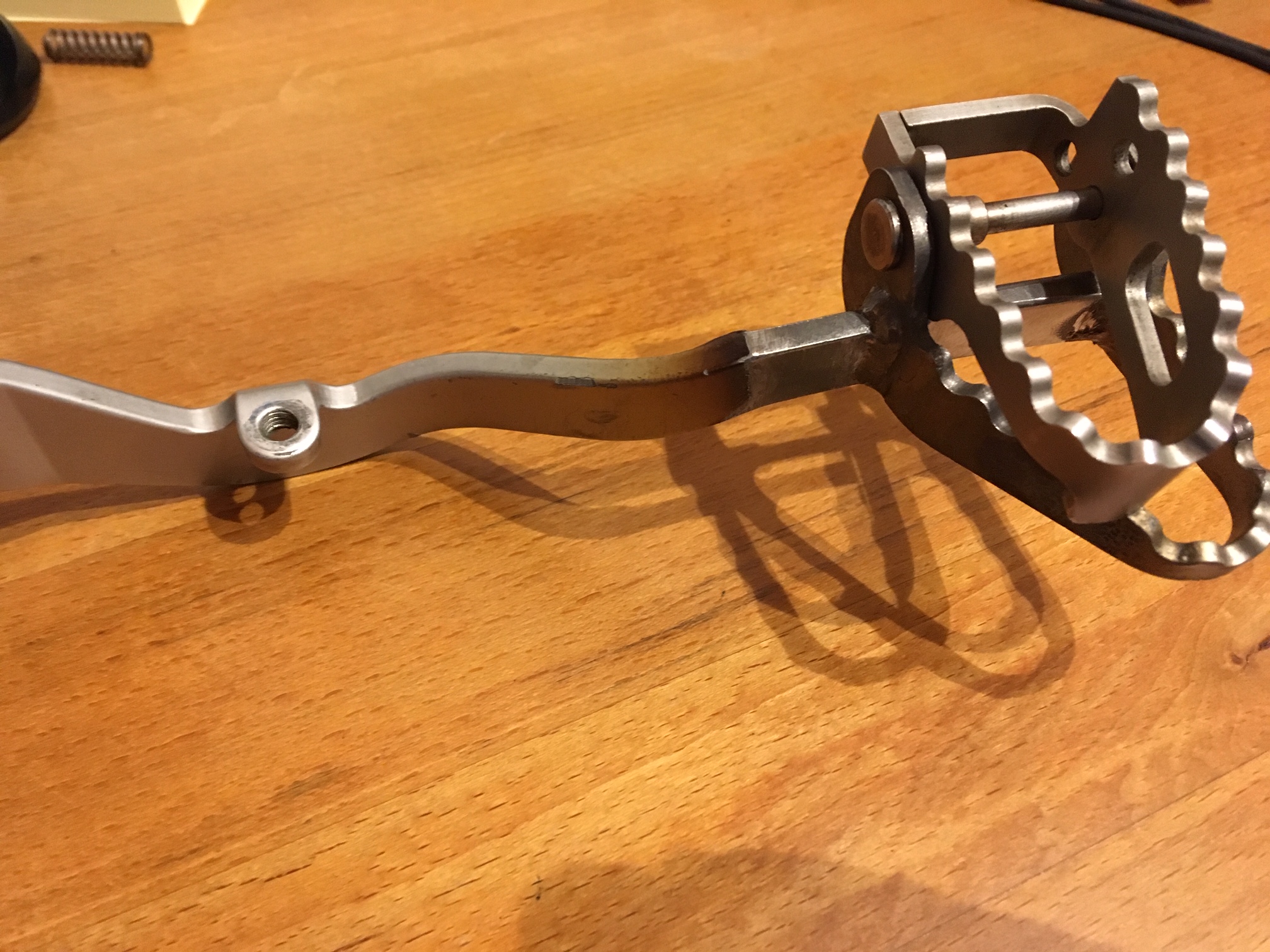 Das Klapp-Pedal der TripleBlack wurde kannibalisiert und aufs Pedal der 1150 drauf geschweißt.