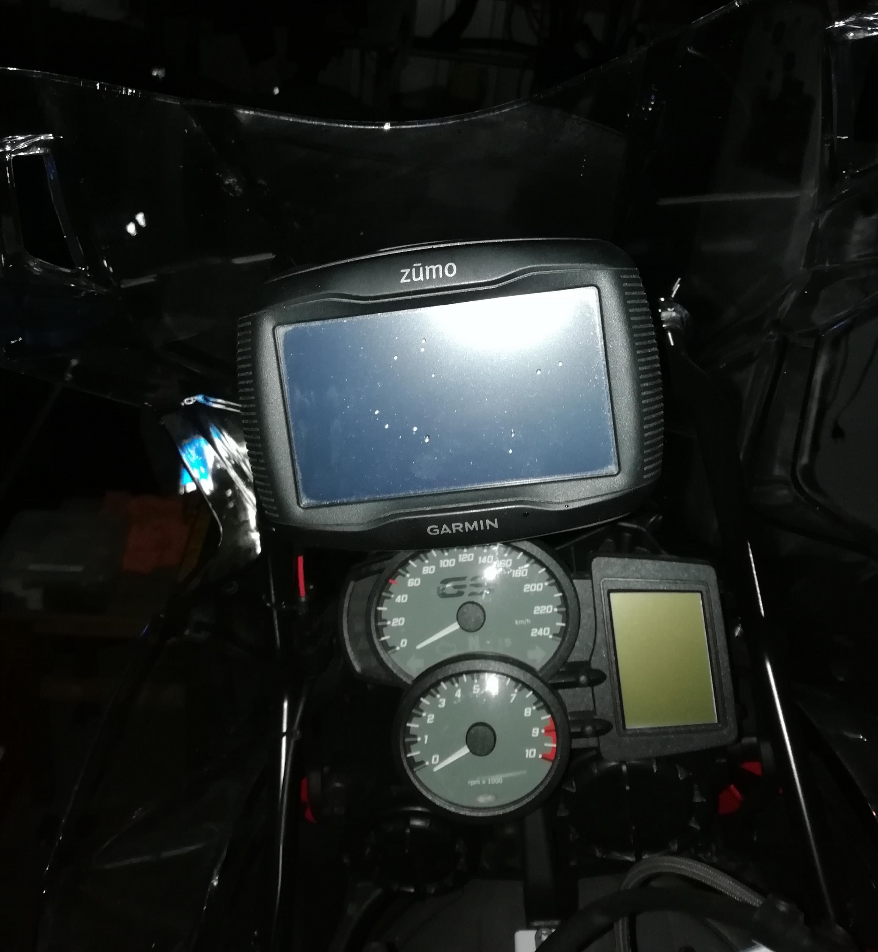 Jetzt habe ich eine Halterung für mein Handynavi am linken Lenker. Schaut vieleicht nicht so toll aus, aber man kann aufs Navi sehen, ohne den Kopf zu bewegen. Das Navi ist quasi direkt neben den Armaturen auf gleicher Höhe.