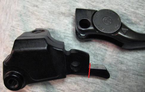 Zur Verdeutlichung hab ich ein Bildchen beigefügt. Der Hebel ist zwar von einer 1100 GS, das Prinzip ist jedoch das gleiche. Gefeilt wird an der im Bild silbern glänzenden Fläche.