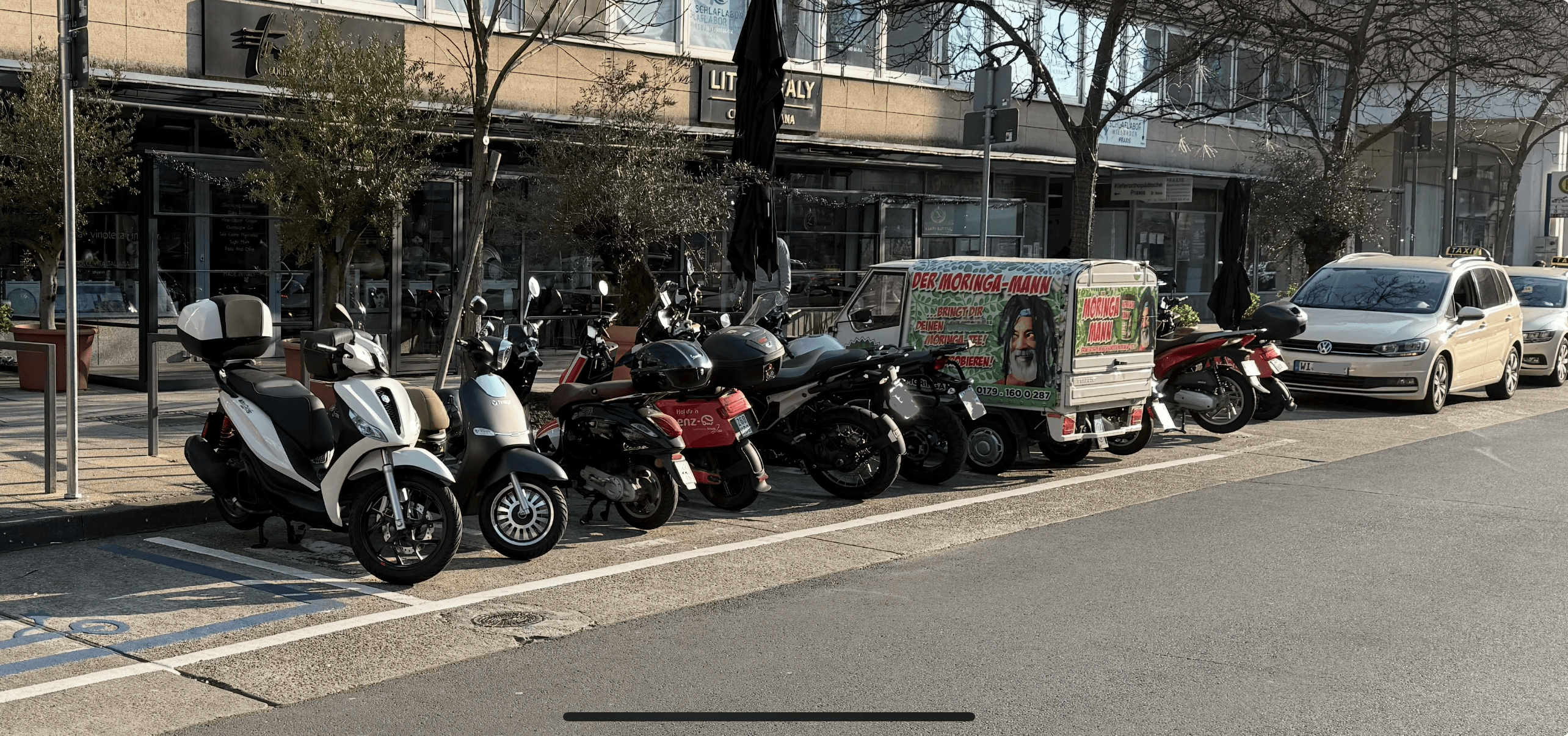 Gnade dir übrigens "jenes höhere Wesen, das wir verehren", wenn man die Linie links überschreitet (55 Euro). Der Teil wurde den Motorrädern weggenommen und ist jetzt für die Tretroller reserviert. Wiesbaden ist so geil.