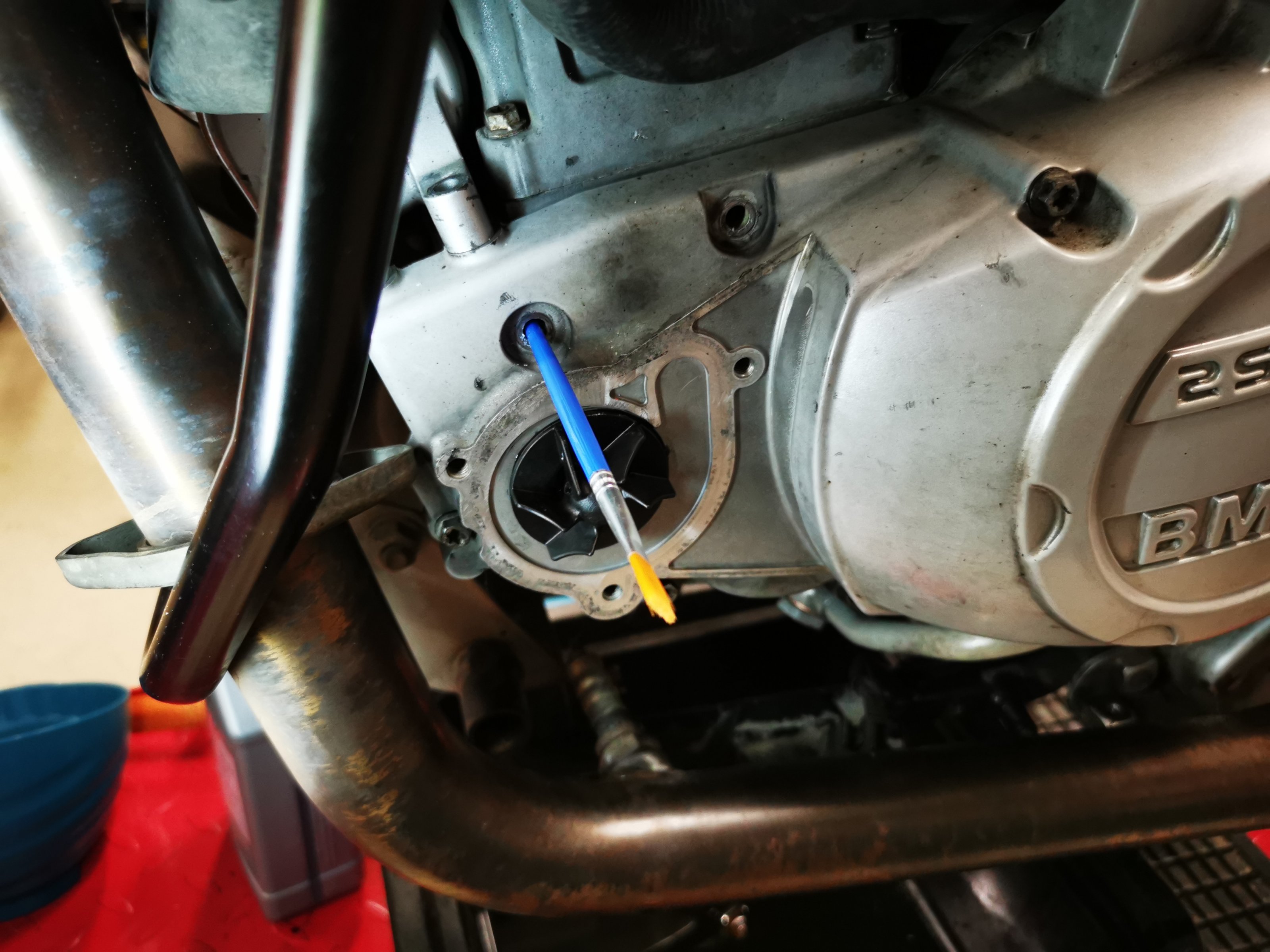habe gerade die Wasserpumpe ersetzt da sie undicht war. Der Wasserpumpendecke hat ja ein Ablauf und somit auch ein Dichtring an einer der Schrauben.