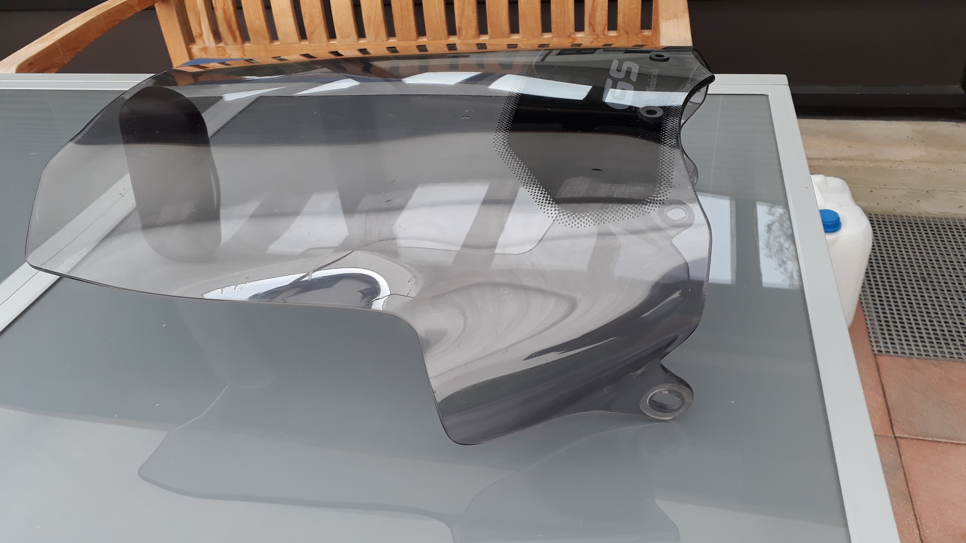 ich verkaufe eine getönte Scheibe von Wunderlich für die R1200GS in rauchgrau. Die Scheibe ist unbeschädigt und hat keine Katzer bis auf die typischen kleinen, feinen Kratzer, die über die Zeit beim Putzen entstehen. Weiterhin gibt es innen einen kleinen Abdruck der Touratech Halter Gummis, ca. 2 cm über dem schwarzen Feld unten. Die Scheibe passt laut Wunderlich auf die GS von 2007 bis 2012.