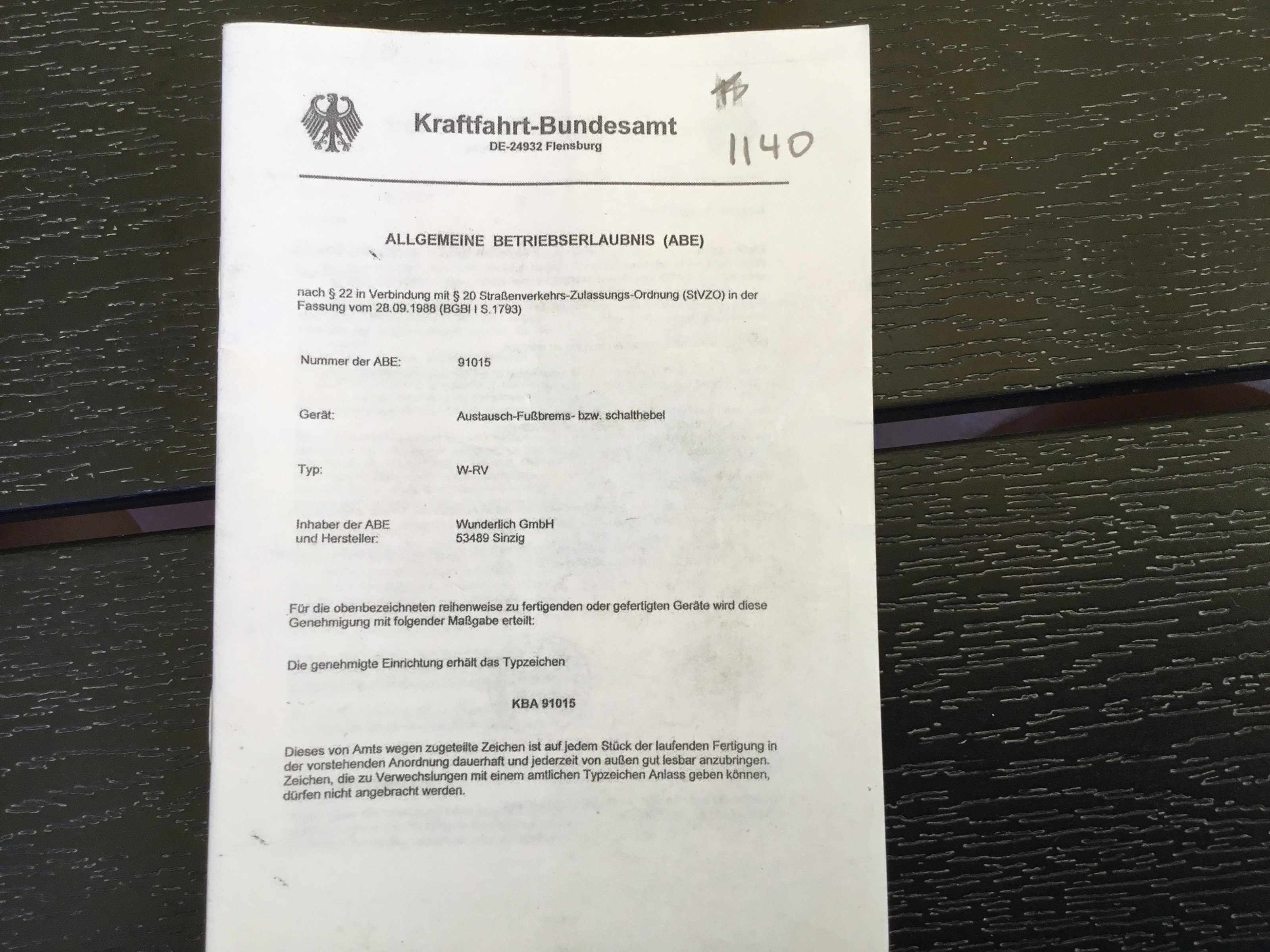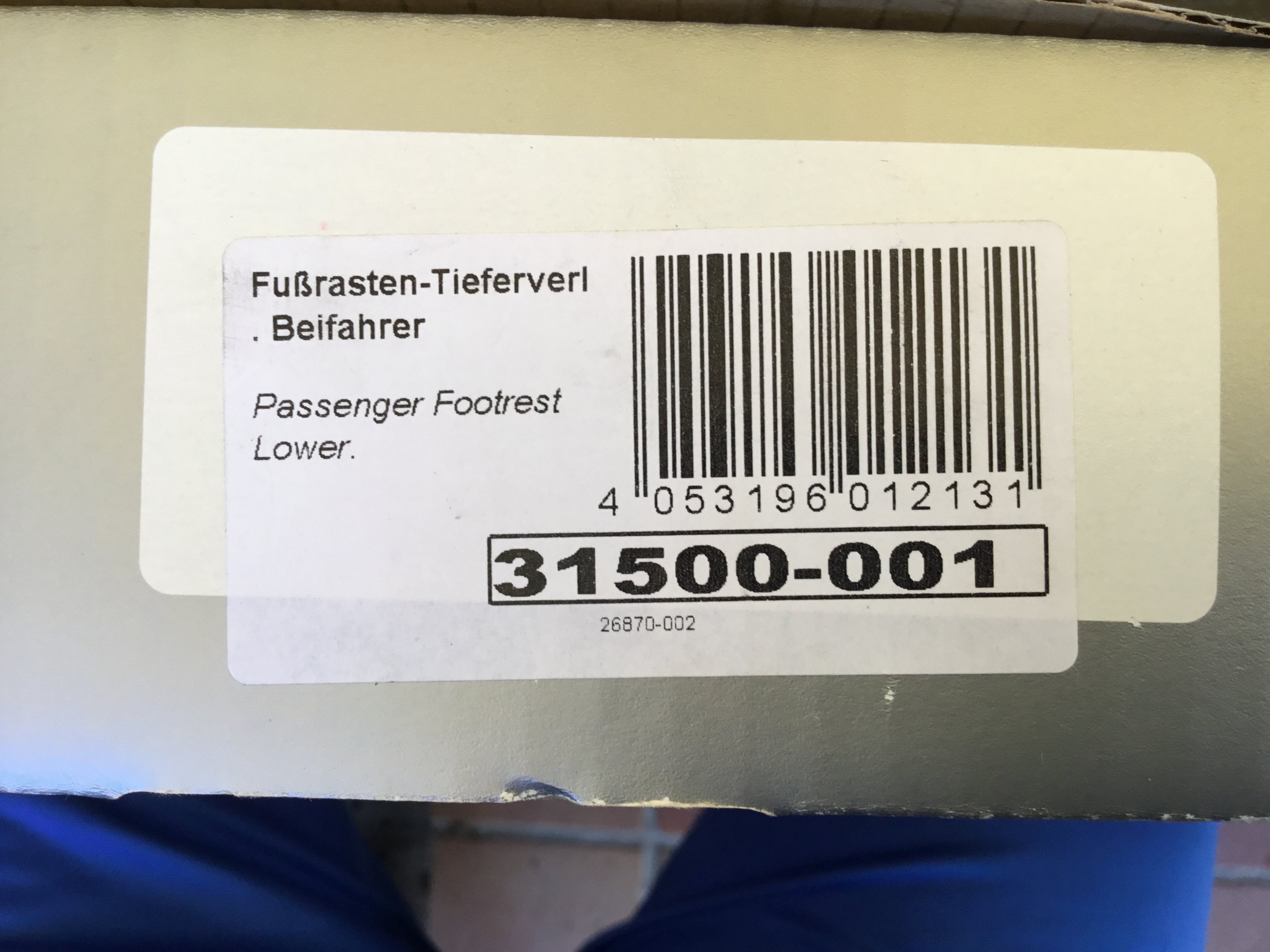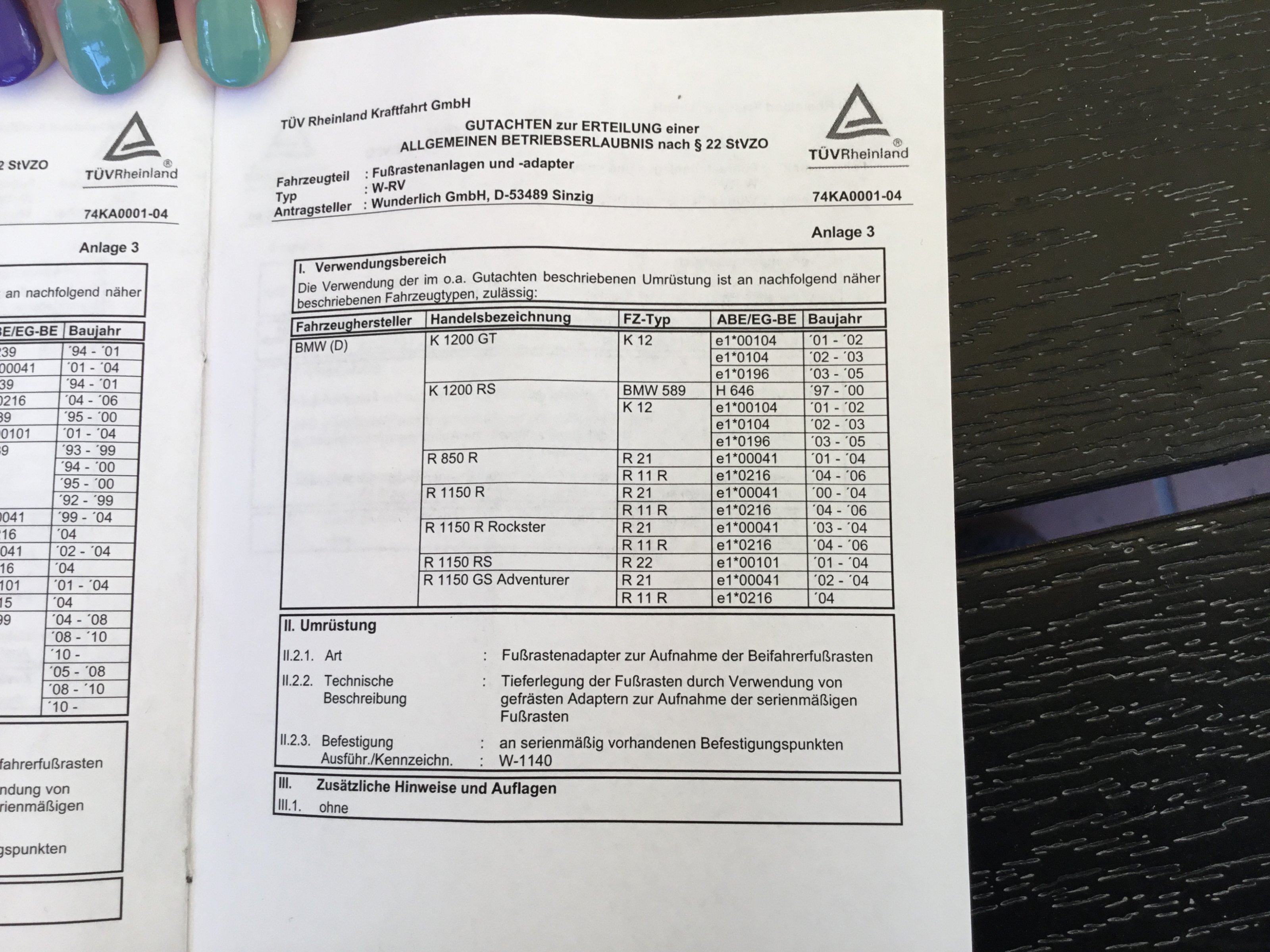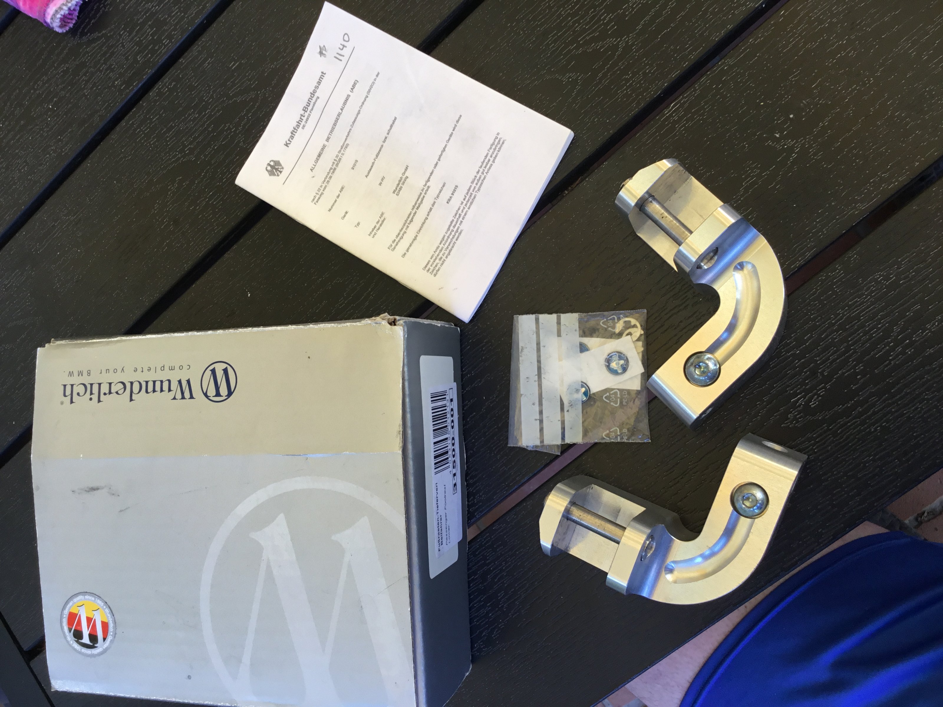 Zum Verkauf steht ein Satz Fussrasten Tieferlegung für den Beifahrer von Wunderlich.
