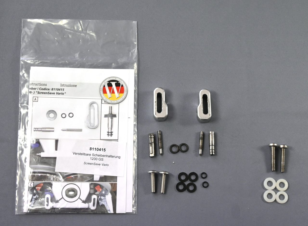 Es sind die Montageteile, wie auf dem Foto zu sehen dabei - die zwei kleineren Gummiringe sind original und ungenutzt (bei meiner GS war für die Ringe kein Platz), ebenso die kleineren Nylonscheiben und die Schrauben. Zusätzlich lege ich noch 4 größere Nylonscheiben und längere Edelstahlschrauben bei, die mEn die Montage erleichtern.