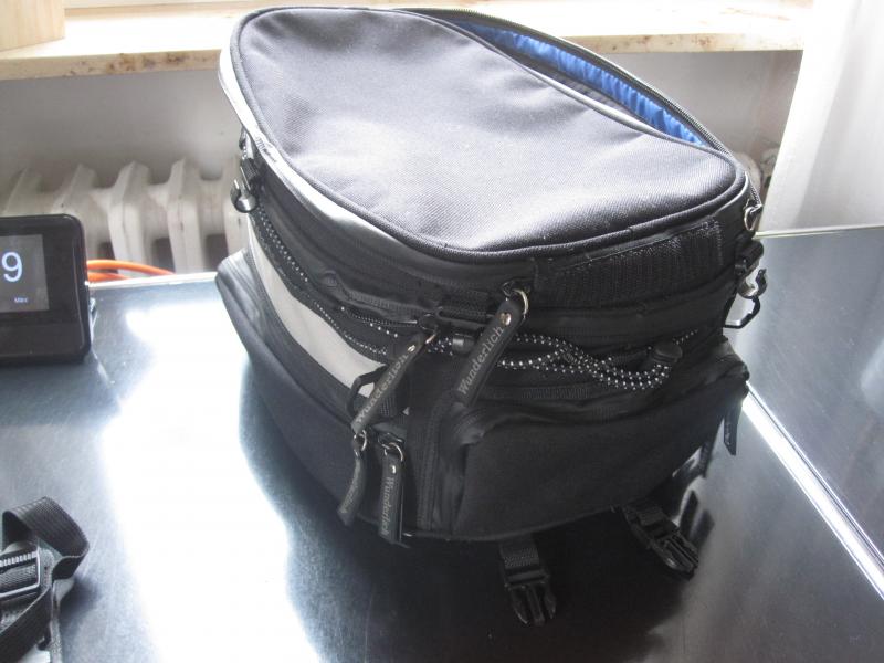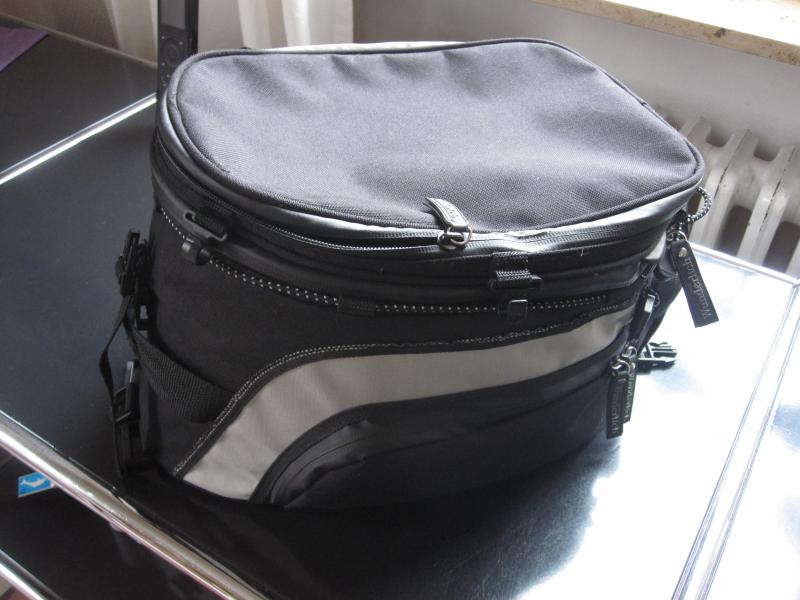Biete einen Wunderlich Tankrucksack mit Befestigungsmaterial und aufsteckbare Kartentasche. Der Tankrucksack befindet sich in einem sehr guten Zustand. Die obere Kartentasche ist wendbar und abnehmbar. An dem Rucksack befinden sich drei Aussentaschen und innen ein innenliegender Reissverschluss (nutzbar für ein Ersatzvesier). Ein Zipper mit Wunderlich Aufdruck fehlt leider. Man könnte aber einen Ring, Kabelbinder oder ähnliches am Reissverschluss befestigen.