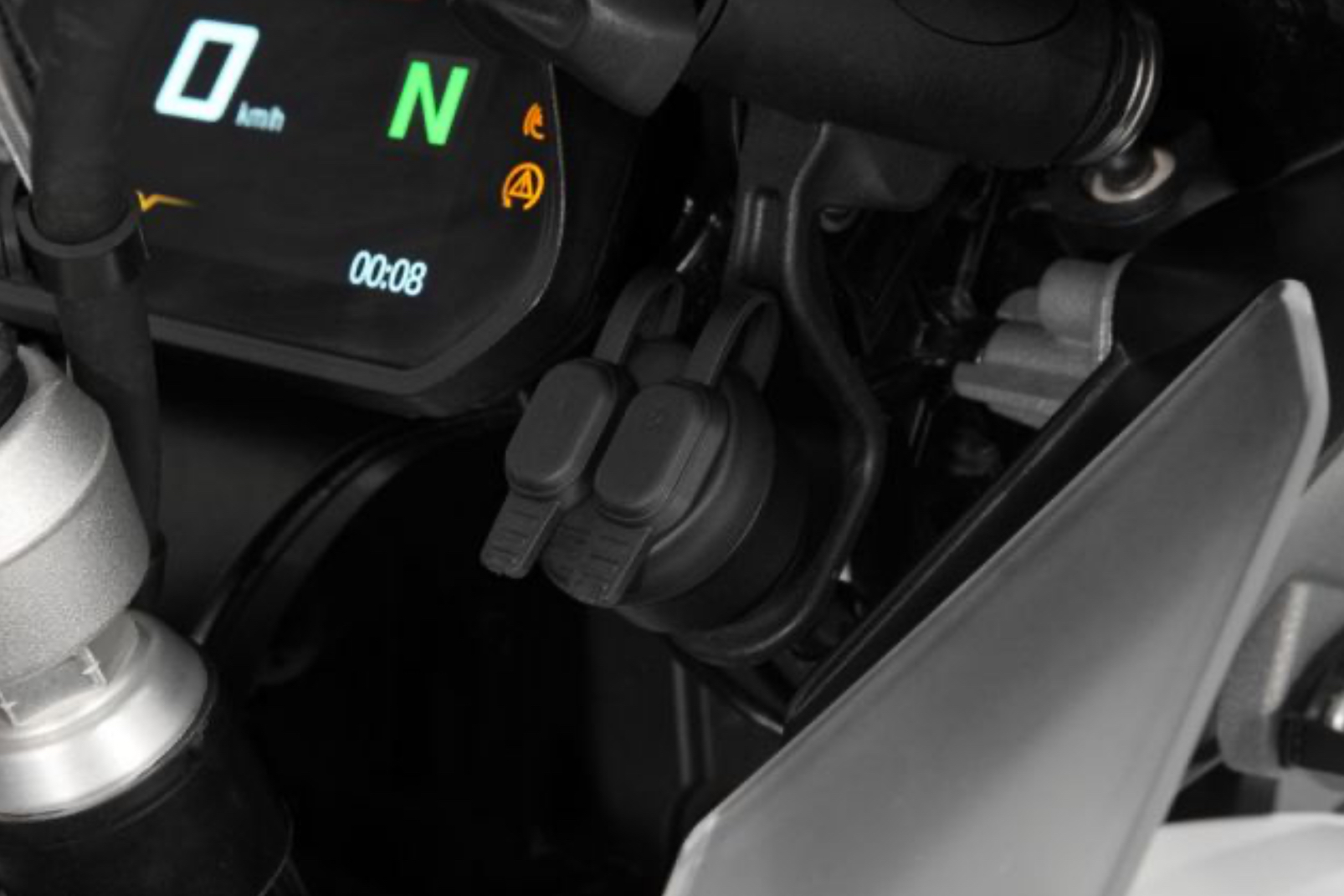 Doppel-USB-A Plug-n-Play Einbausteckdose mit Schnellladefunktion für BMW Motorräder.