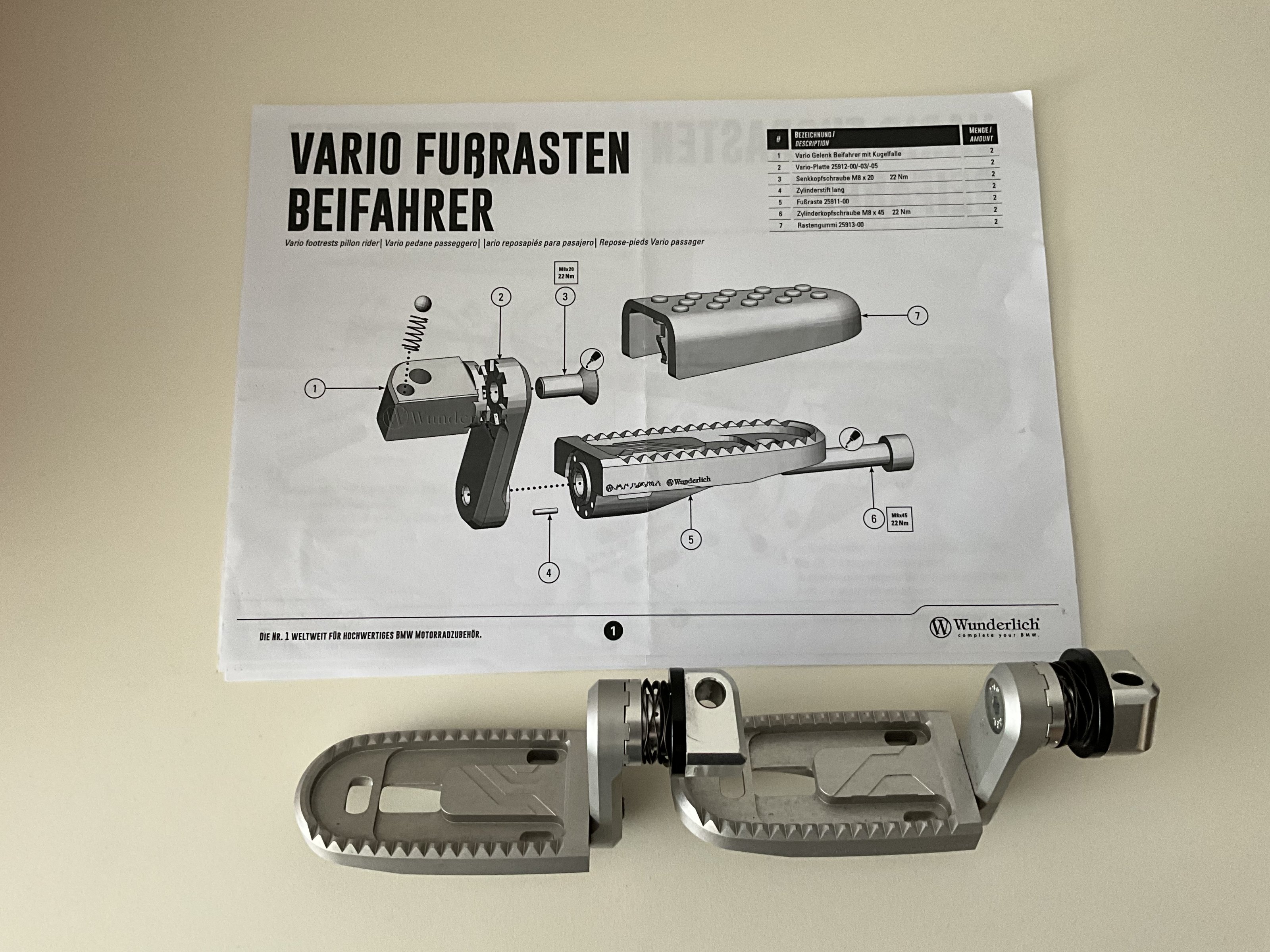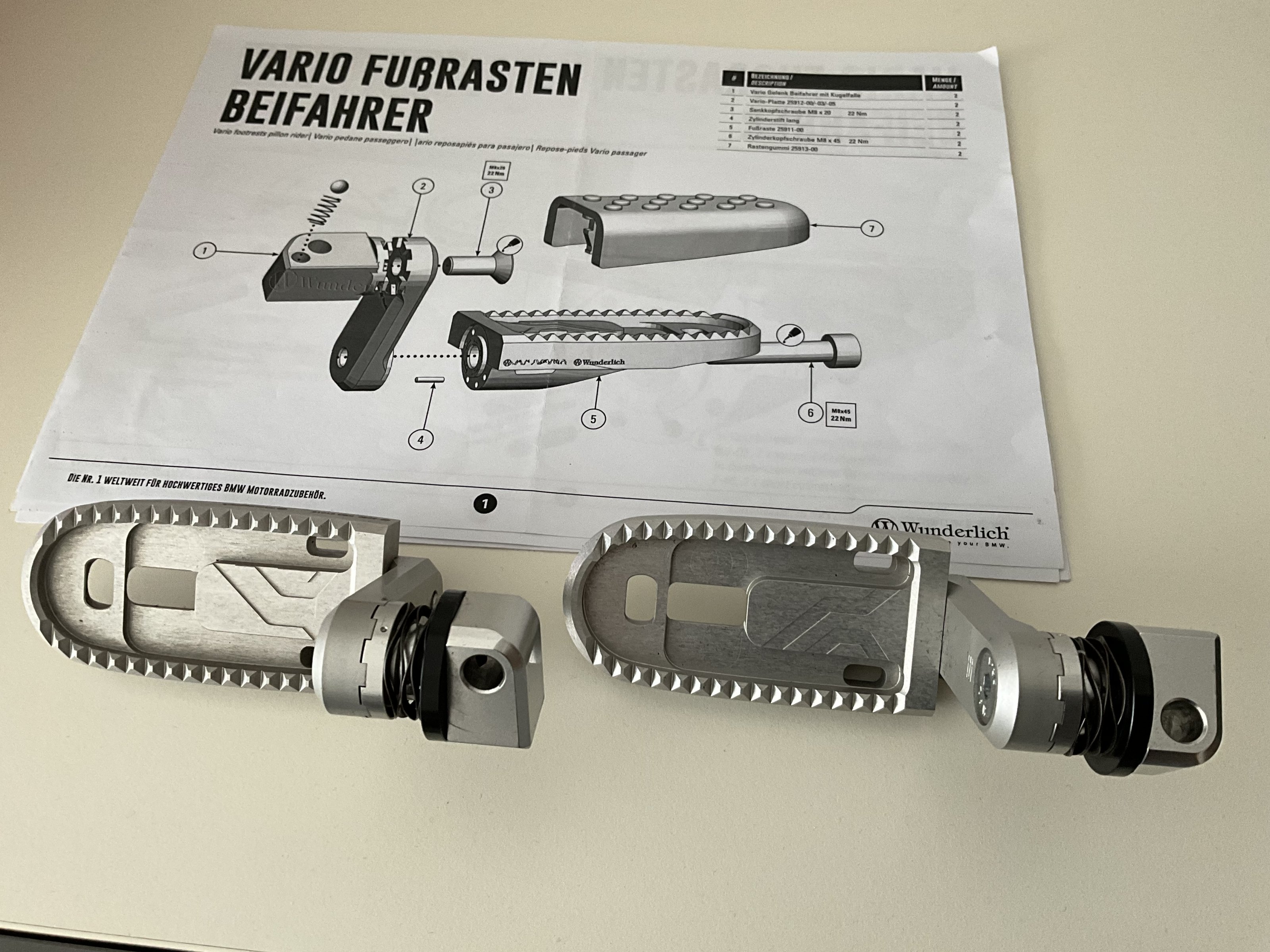 Verkaufe meine Wunderlich Vario-Fussrasten für Beifahrer. Diese waren ca. 6 Monate verbaut und wurden wieder demontiert, da ich doch meistens allein unterwegs bin und diese daher nicht benötige.