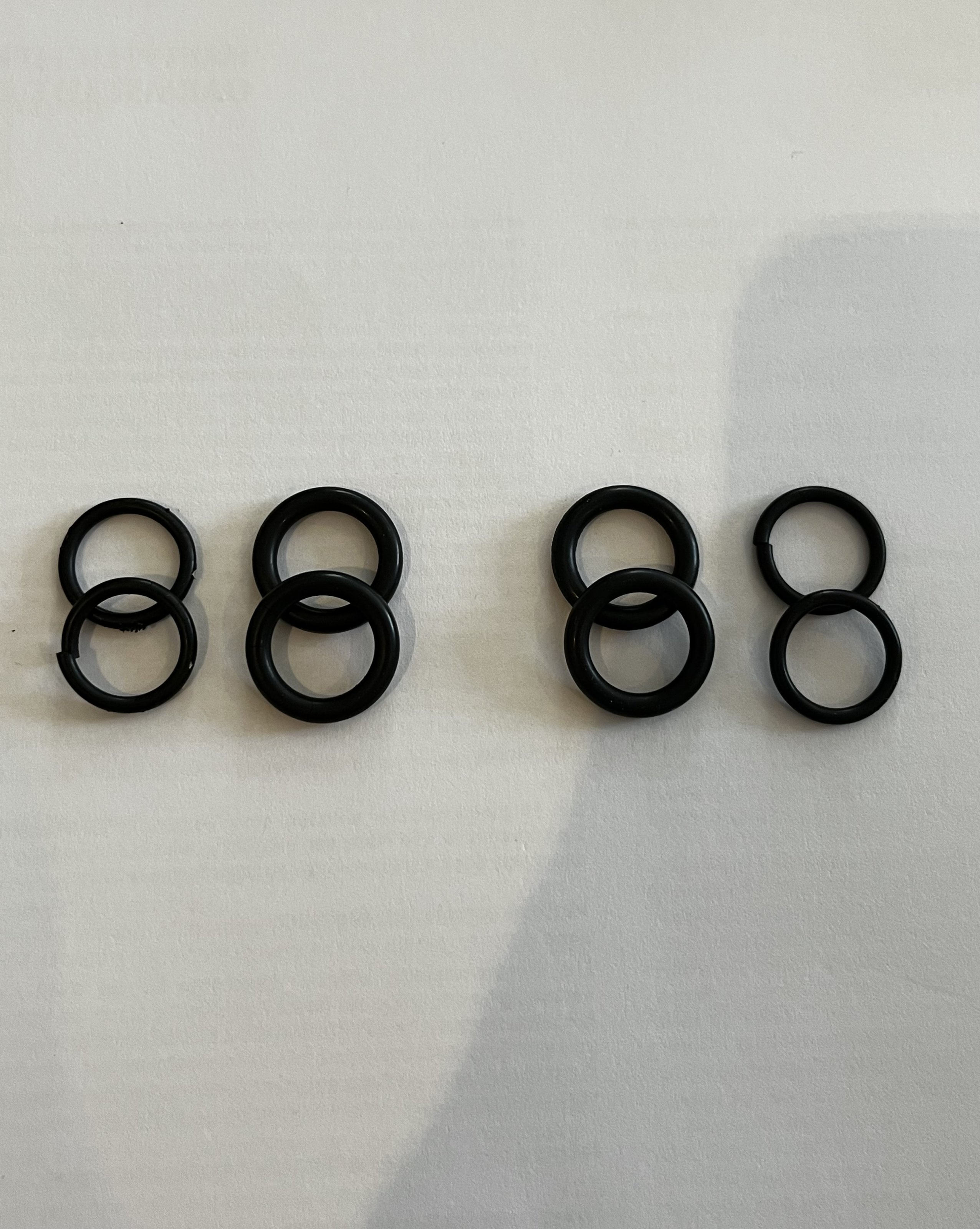 Lediglich zwei von den dünnen O-Ringen sind wahrscheinlich durch Vibrationen eingerissen.