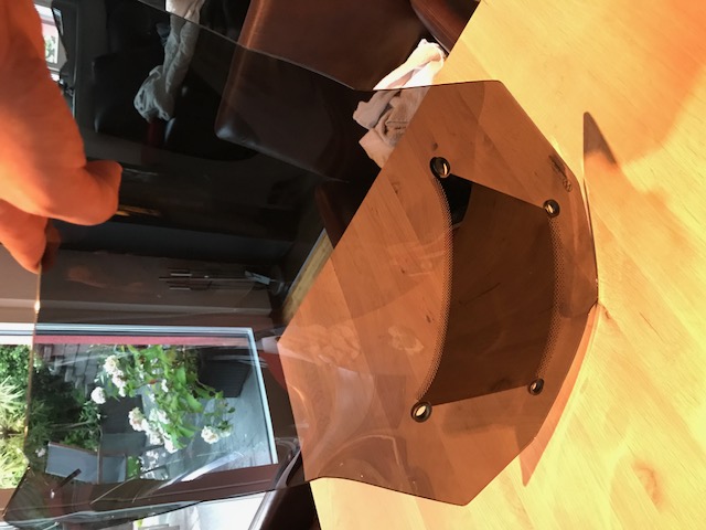Ist praktisch neu, da ich eine Ersatzscheibe bekommen habe welche nie gefahren wurde. Es gibt eine eine zweite Scheibe dazu, welche einen kleinen Riss unten in der Mitte hat (wahrscheinlich Schrauben zu fest angezogen...).