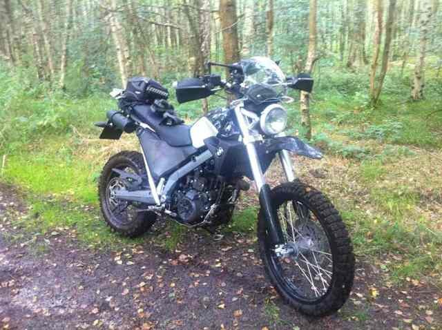 Klappspiegel von TT, Kennzeichenhalter von Wunderlich, Windschild, Alu Handprotektoren.