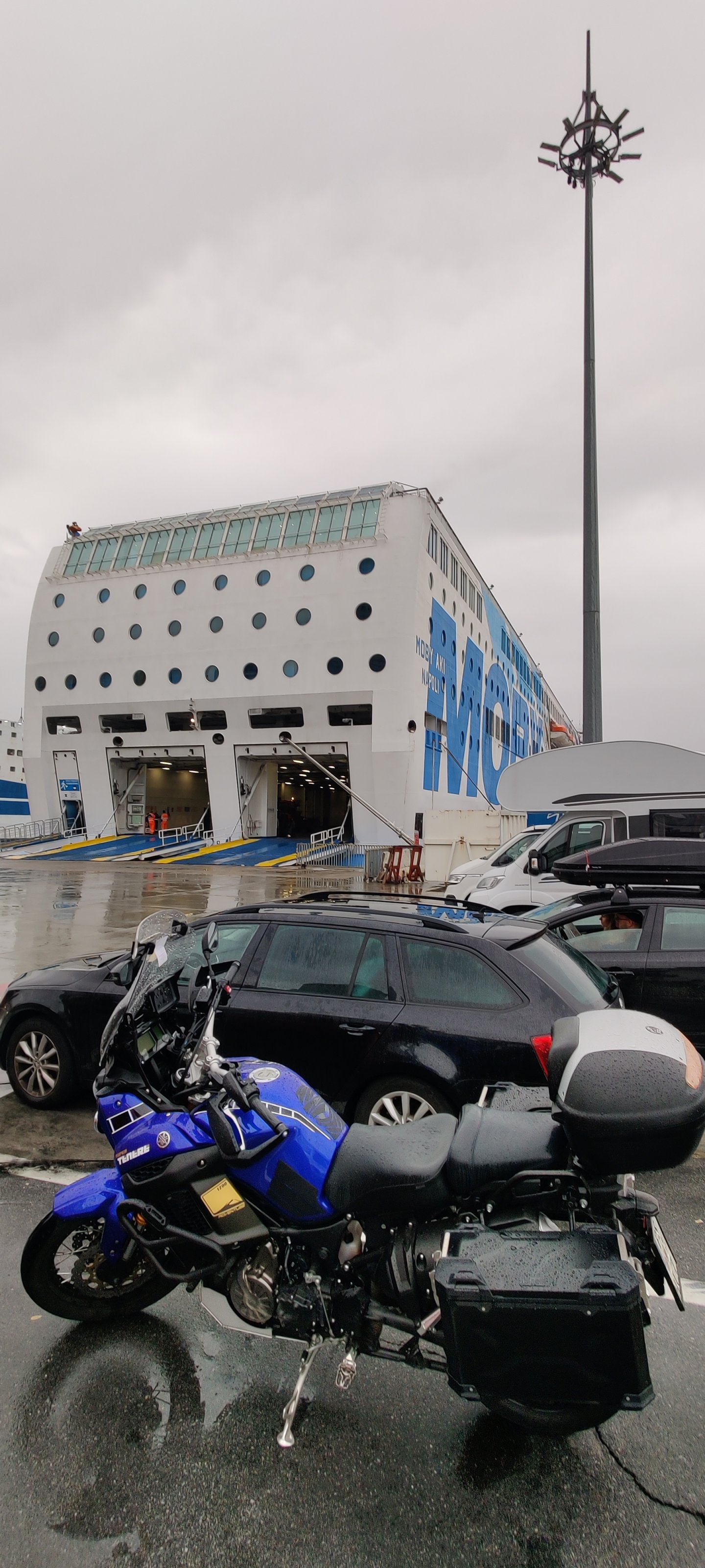 Generell schiebe ich meine Maschine immer, auch mit Gepäck, an Zollanlagen mit Stau . ä., wenn ich sie einmal abgestellt habe aufgrund der Wartedauer! Und auf Fähren fahre ich immer eine Extrarunde, bevor ich sie abstelle - nie mehr nur 20 m und abstellen!
