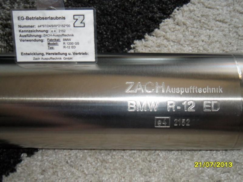 Diskutiere Zach Edelstahl Auspuff BMW R1200 GS/ GSA"TOP" im Erledigte Biete-Anzeigen Forum im Bereich Biete (privat); Verkaufe sehr guterhaltenen „Zach-Auspuff“ für BMW R1200GS/Adventure Typ R-12 ED