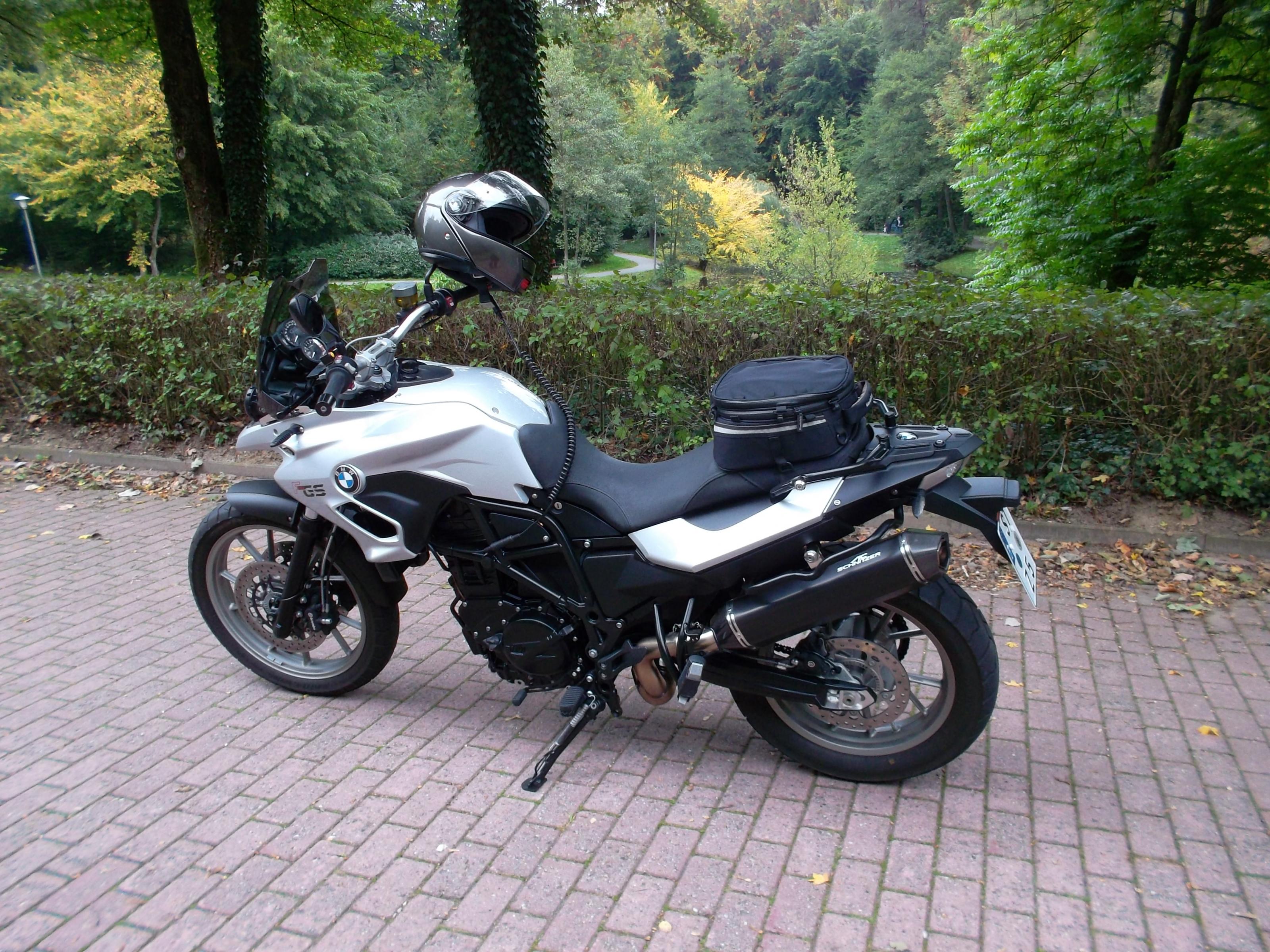 ), Hauptständer von BS, Scheibe Airflow von Givi, Sturzbügel von BS, McCoi-Kettenöler, Garmin Zumo 660 links auf Lenker. Jetzt überlege ich noch, ein 16er Ritzel einzubauen, das aber erst nach ein paar Kilometern, wenn die volle Drehzahl verfügbar ist.