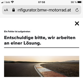 Bei BMW dauert die Fehlerbeseitigung halt ein wenig länger.Jetzt wollte ich gerade nachrechnen lassen (via Smartphone), aber der bekannte Fehler, an dem schon seit 10 Jahren gearbeitet wird....