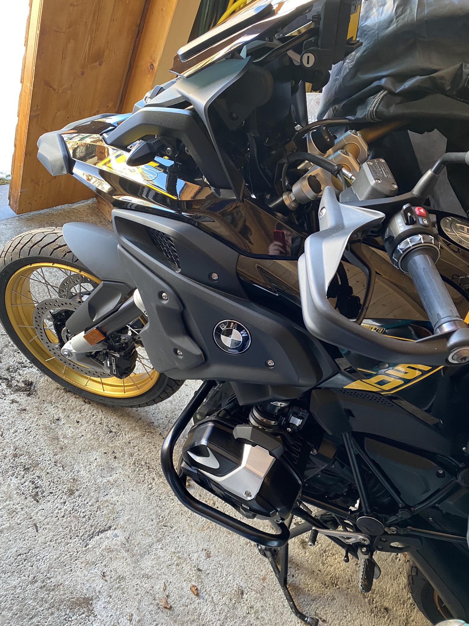 Es bleibt alles wie BMW sich das so vorgestellt hat, nur Aufkleber (am Moped) mag ich nicht so – dehalb in mühevoller fummelsarbeit die TripleBlack Aufkleber entfernt (im Avatar noch vorhanden) – leider geht das große GS