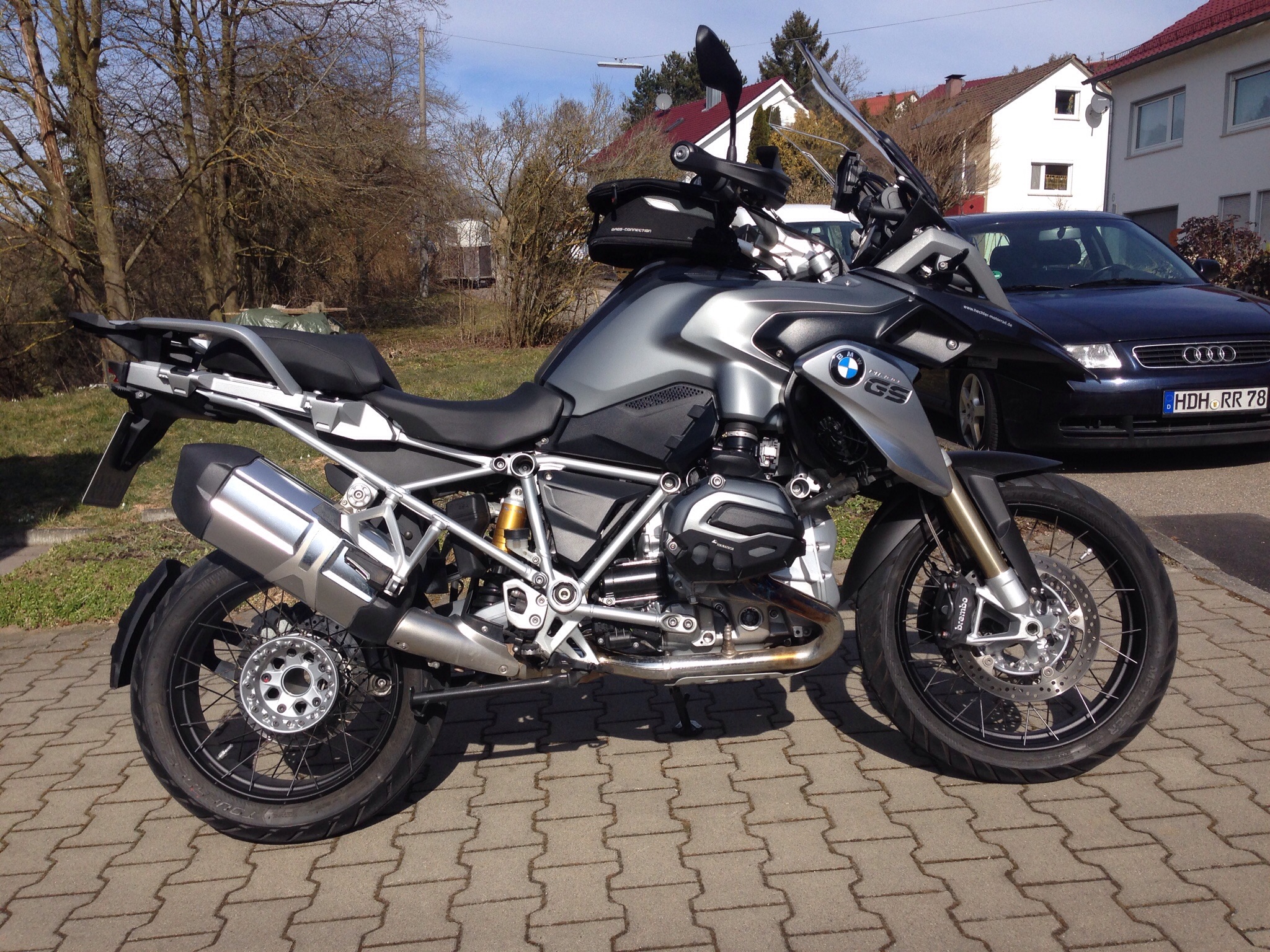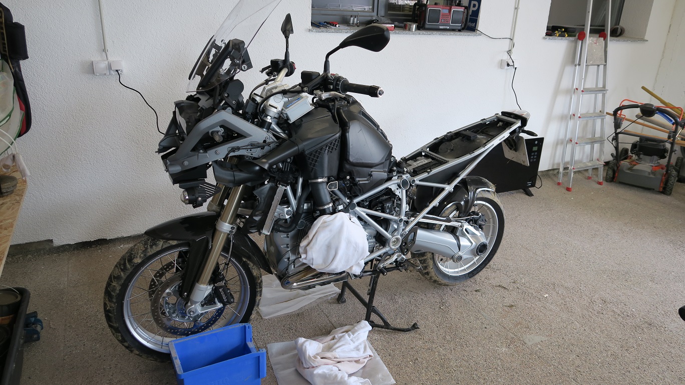 Motorschutzbügel kommt rauf, wenn die zu kurzen Seiten und Hauptständer vom freundlichen auf die normalen getauscht sind.