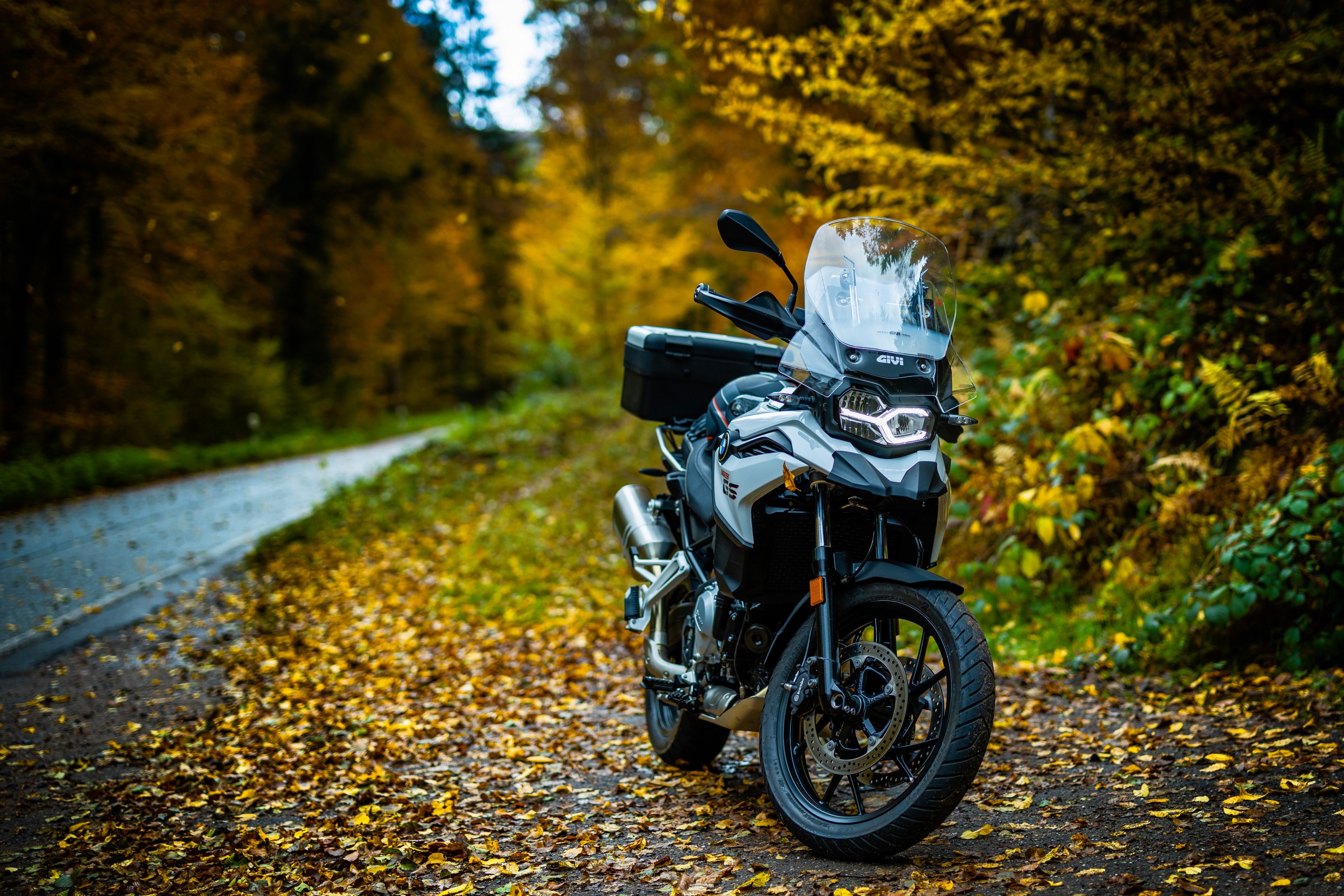 Die Reifen habe ich bei der Ersten Inspektion und nicht im Wald unterwegs, gewechselt..:D Beim Kauf waren bei mir die TKC 80 drauf. Für Offroad sicherlich ganz gut, aber für Straße nicht so super geeignet.. Deswegen der Tausch. Da ich ab und zu mit meiner Frau im Sozius fahre, war mir Sicherheit und gute Bodenhaftung wichtig. Das eine Bild ist halt noch vom August. :-).