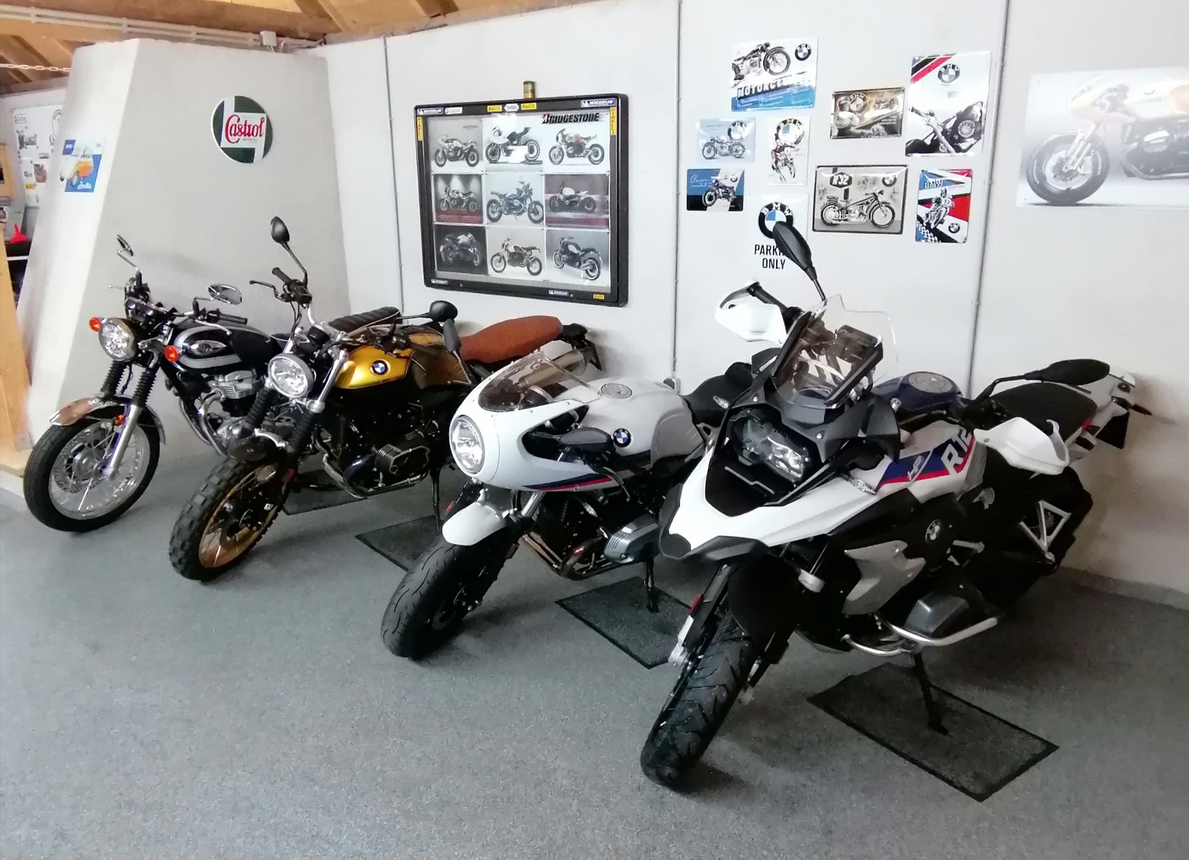 Ein paar meiner Bikes die ich einmal besessen habe . Leider besitze ich nur mehr sehr wenige davon . Eine geht die andere kommt . Schade das ich mir nicht alle behalten hab können . Garage ist ein alter Stadel ( Scheune ) mit ca. 50 Quadratmeter der ein wenig hergerichtet wurde. ( auf alt ) . Leider keine Heizung vorhanden .