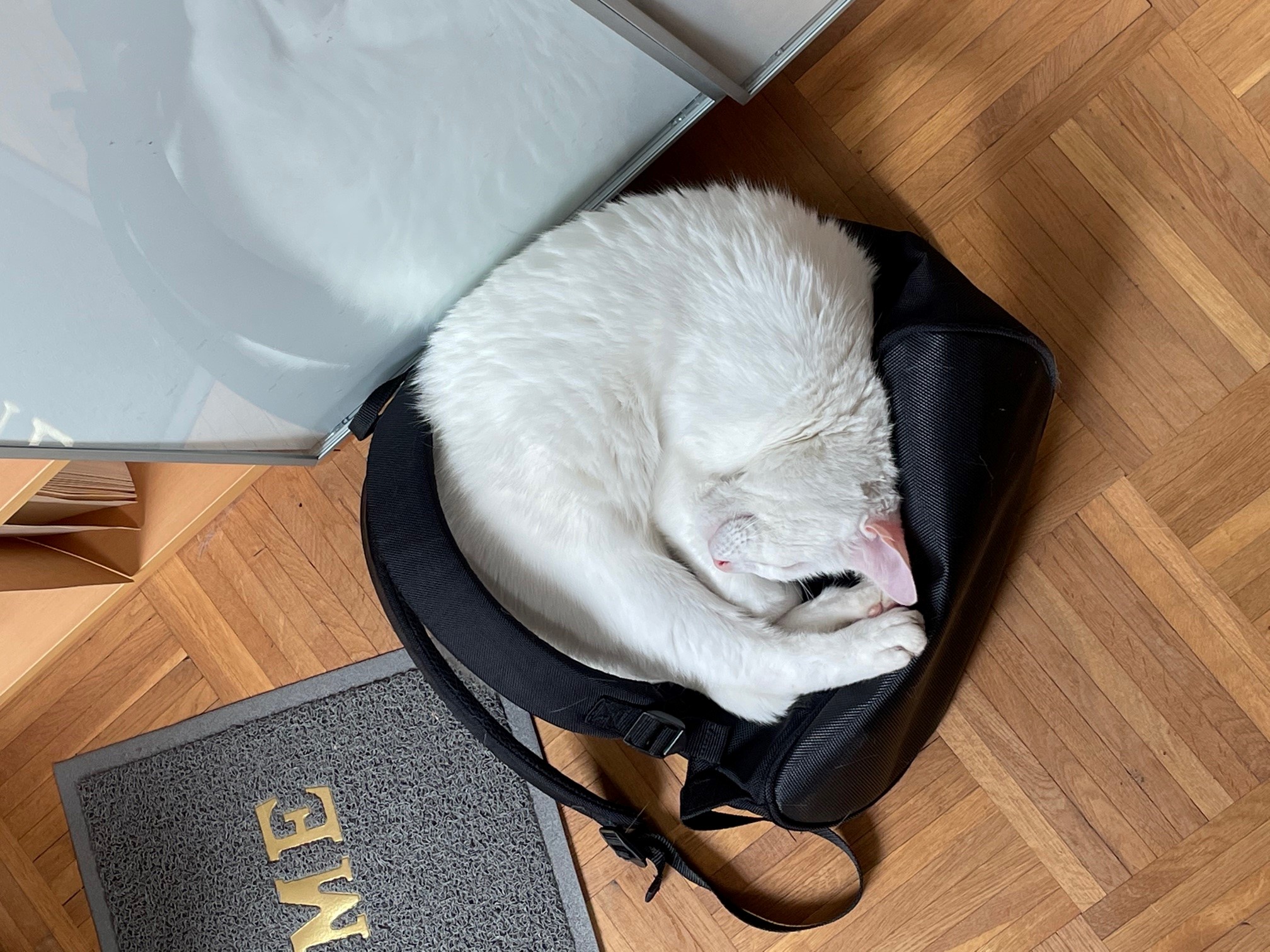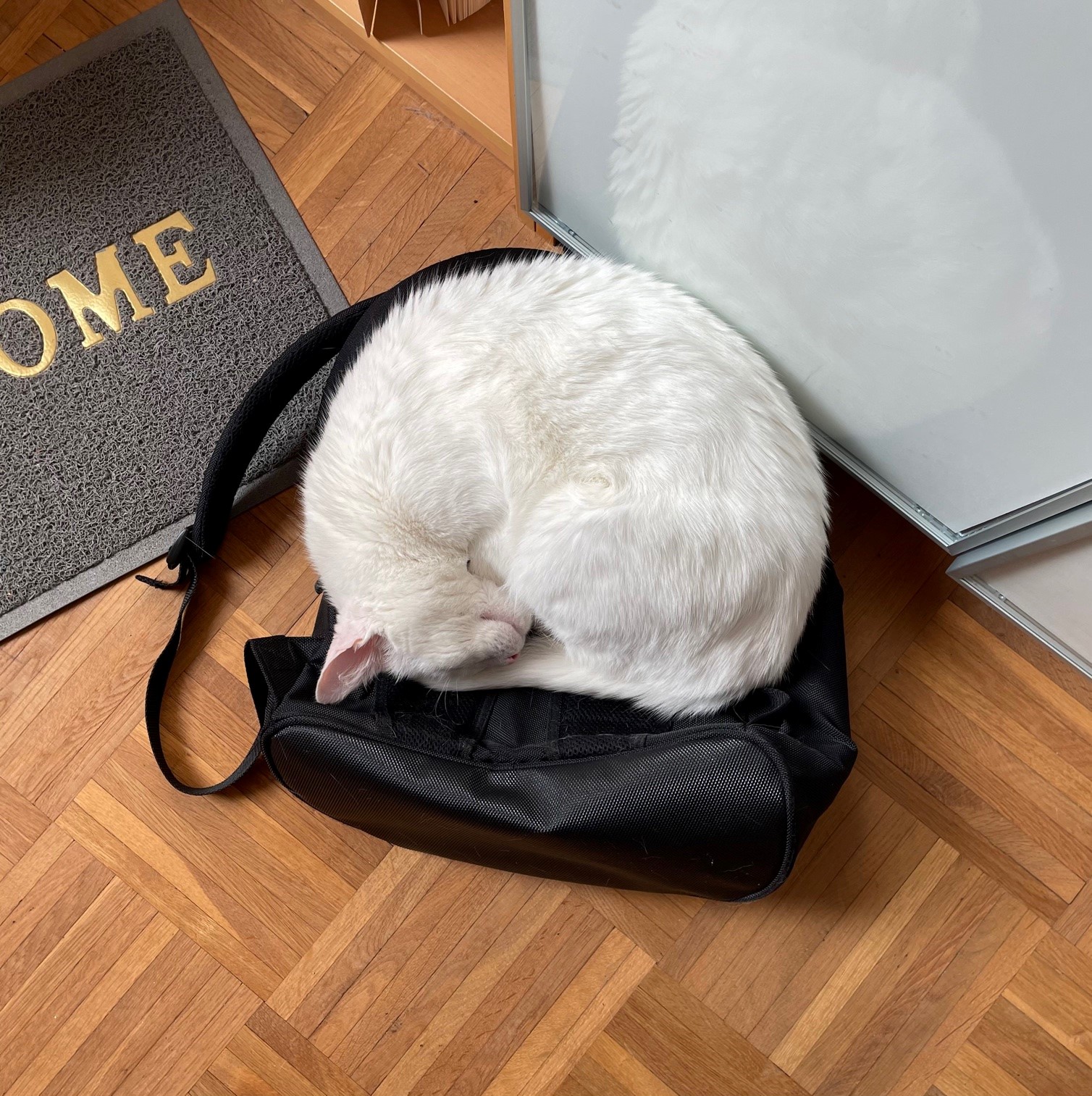 Produktbeschreibung Rucksack: Fassungsvermögen: 1 KatzeZur Arbeit geht erstmal nicht. Der Laptoprucksack ist belegt.