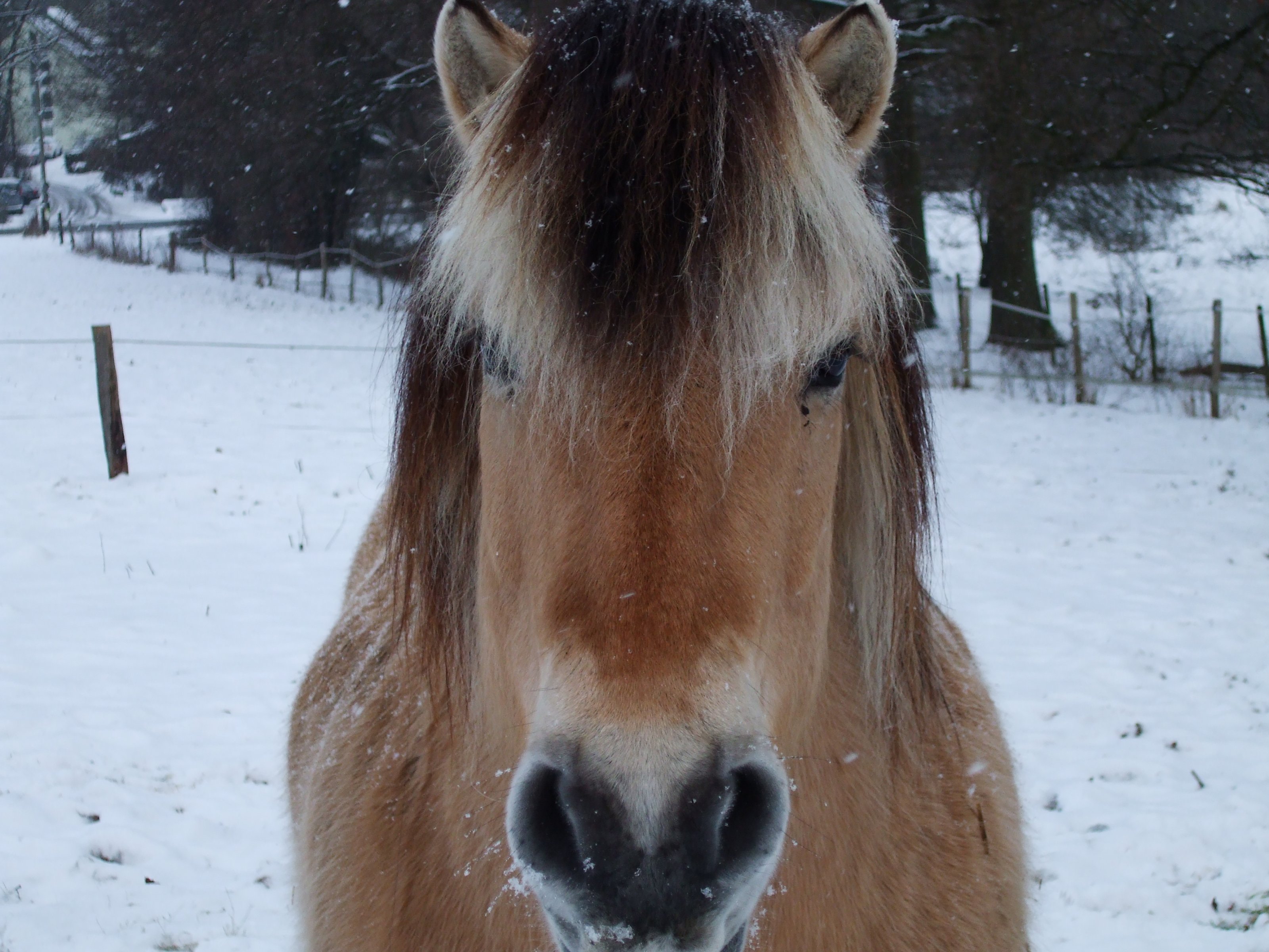 Kein "Tiescher", kein "Wolf", einfach eine Mustangstute aus Oregon, jetzt zwei Jahre hier. Äußerst intelligent/lernfähig, aber auch mit "eigenem Kopf" gesegnet (immerhin zweimal Mutterstute, in der Wildnis zu Durchsetzung gezwungen)! Mit Hunden kommt sie klar, Hauptsache, die sehen Wölfen nicht ähnlich (und Wölfe wittert sie meilenweit vorher, das Rodewalder Rudel hat keine Annäherungschance :)).