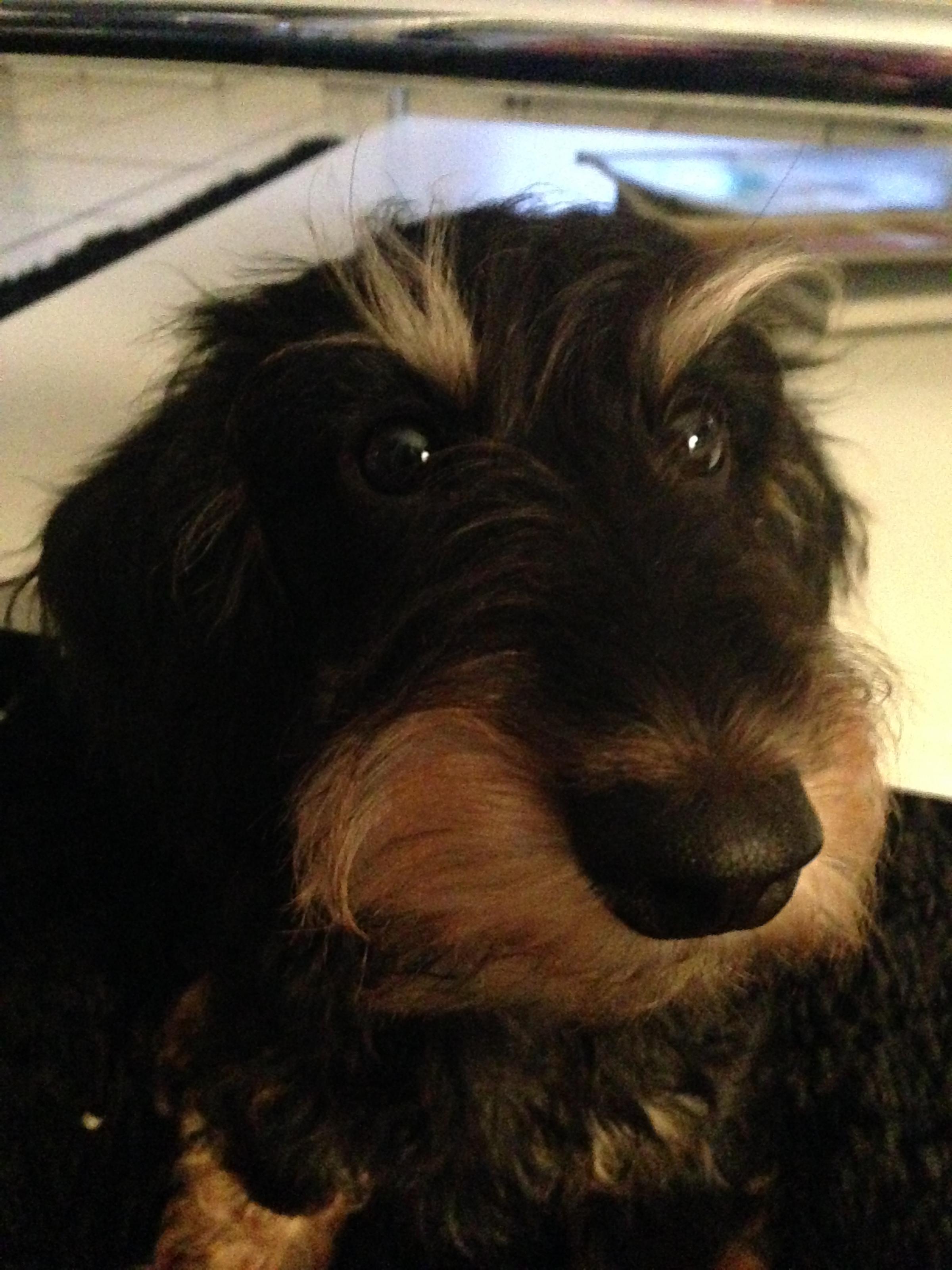 "Zauselchen" (Nebelung = Russisch Blau, nur halblanghaarig, der war schon als Baby "zauselig". Bäuchlein kraulen macht ihn immer überaus glücklich, ansonsten kann man ihn mit Lachs, Garnelen und: Butter, ungesalzen bitte! begeistern. 18 Jahre alt, also schon etwas älter u. behäbiger, leider fast blind)