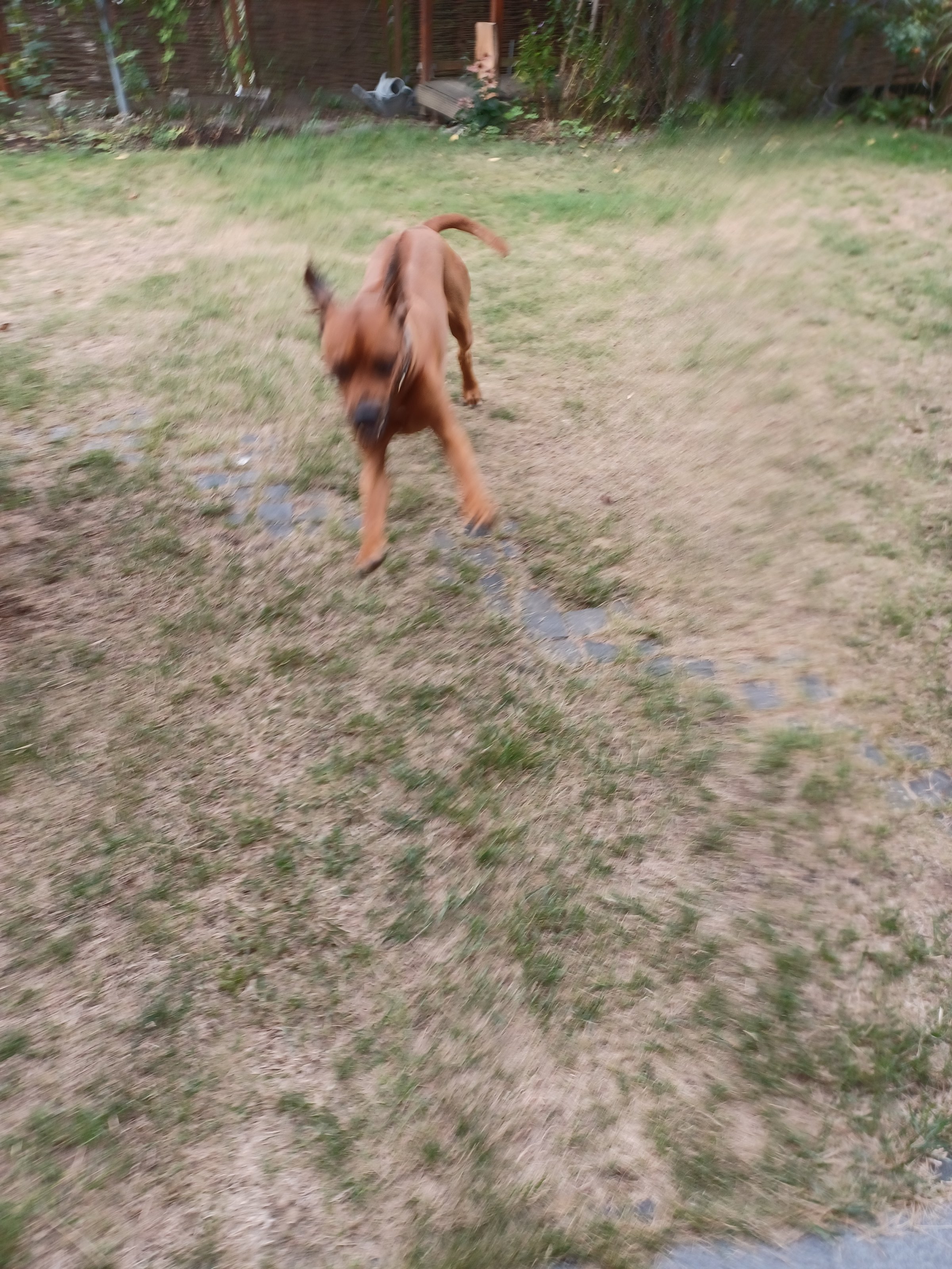 Dein Rasen sieht aus wie meiner. Gestern hat es zum Glück mal geregnet. Und den Rappel hat Kyra manchmal auch besonders gestern kurz vor dem Gewitter.Achtung ich komme - pass blos auf gleich geht es los
