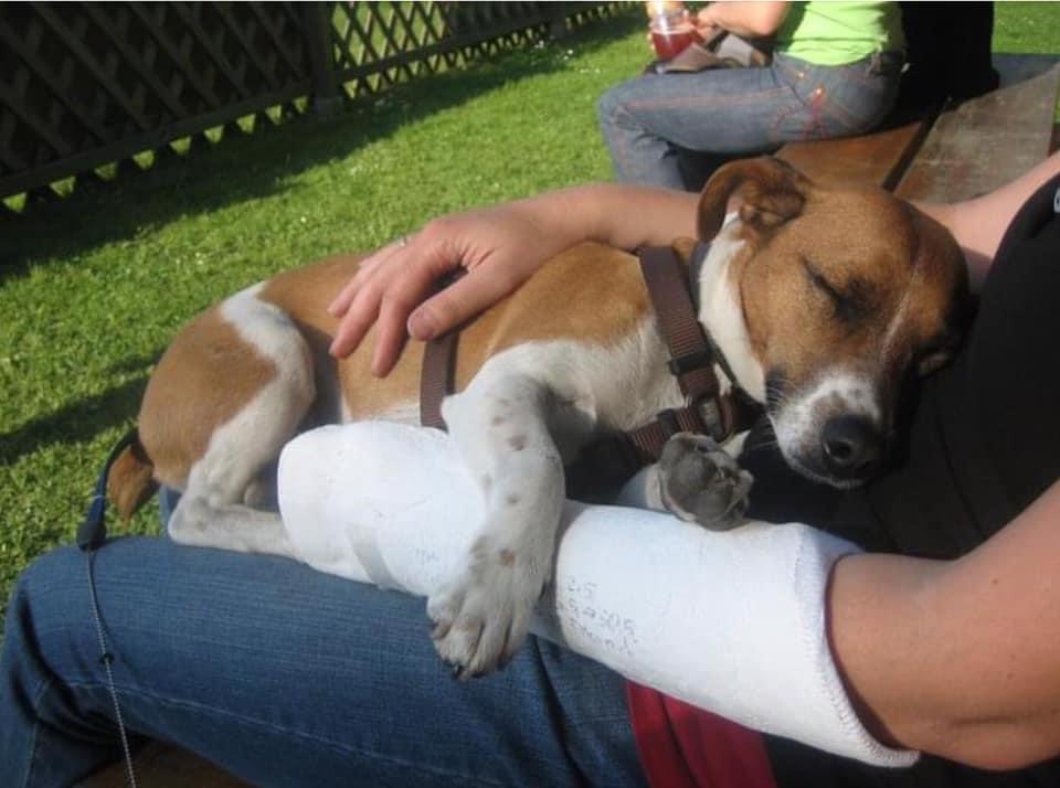 TherapiehundWas altes von Nils aus 2010Meine Frau in Gips weil Reitunfall und Nils muss trösten