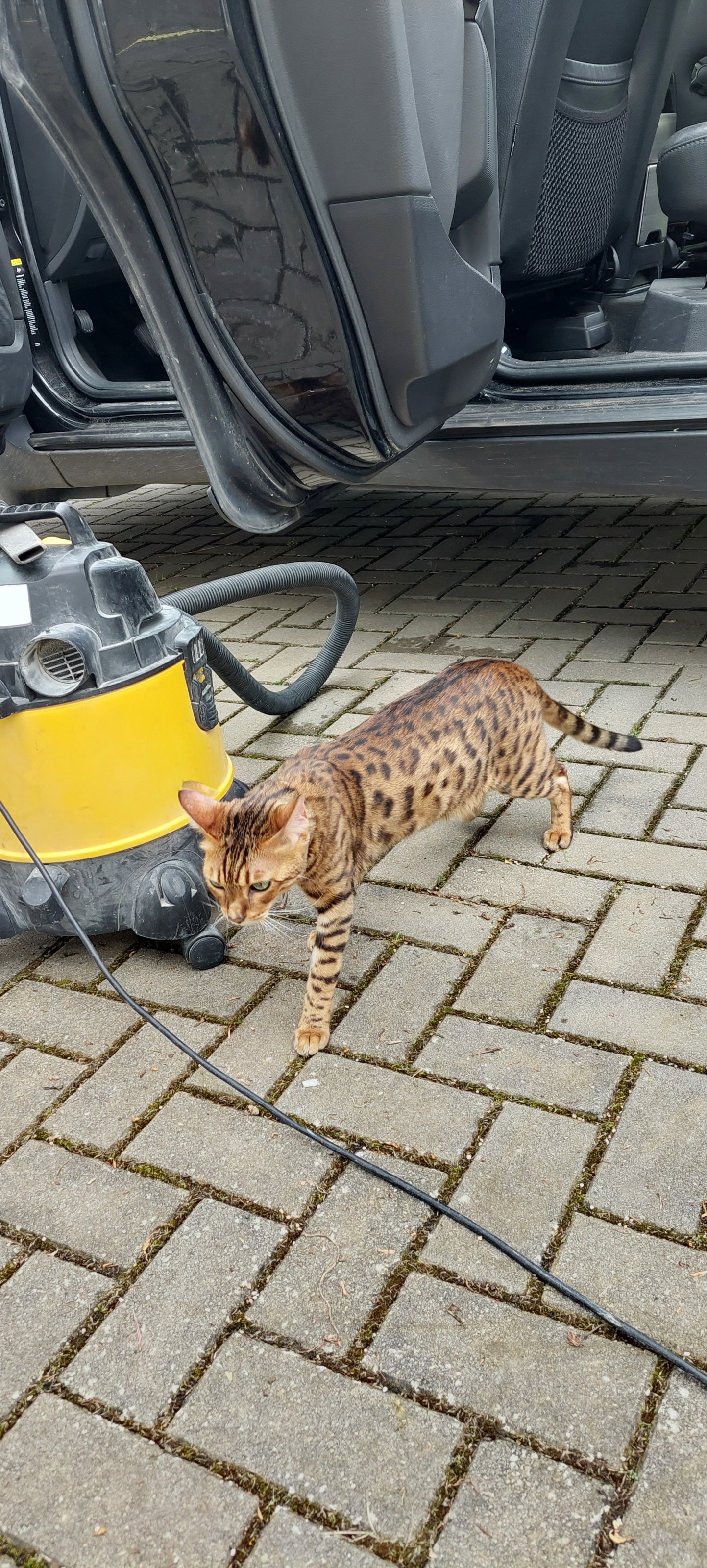 Ich hoffe sie steigt nur in dein Auto. Ist das eine Serengeti-Katze ?