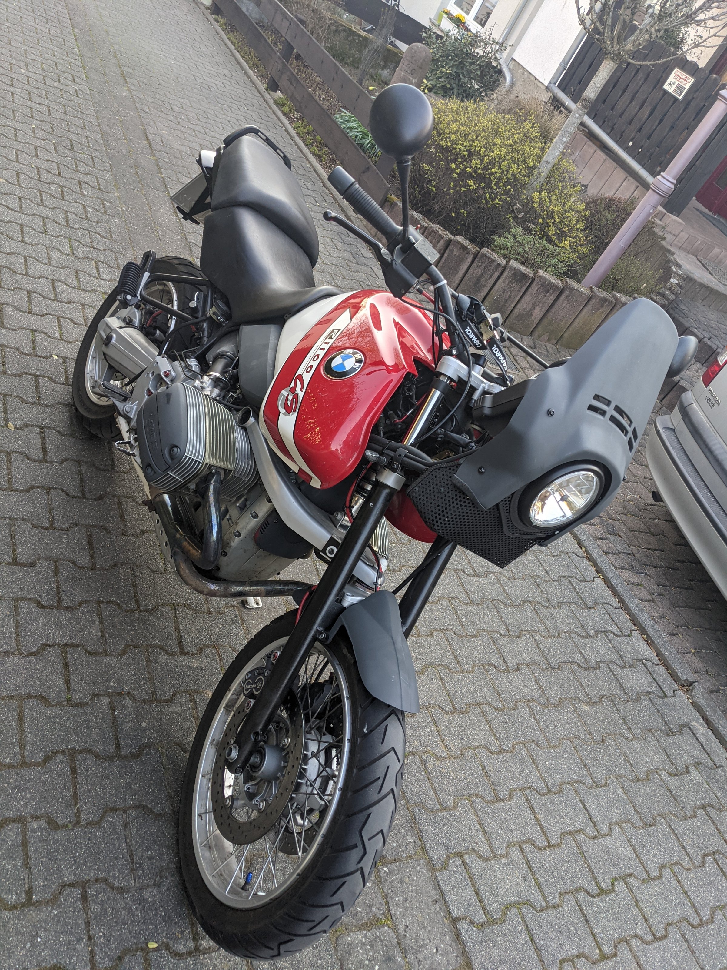 die alte R80/100GS-Maske ist schon schick, sieht an deinem Mopped aber (Sorry-meine Meinung-aus wie gewollt und nicht gekonnt).