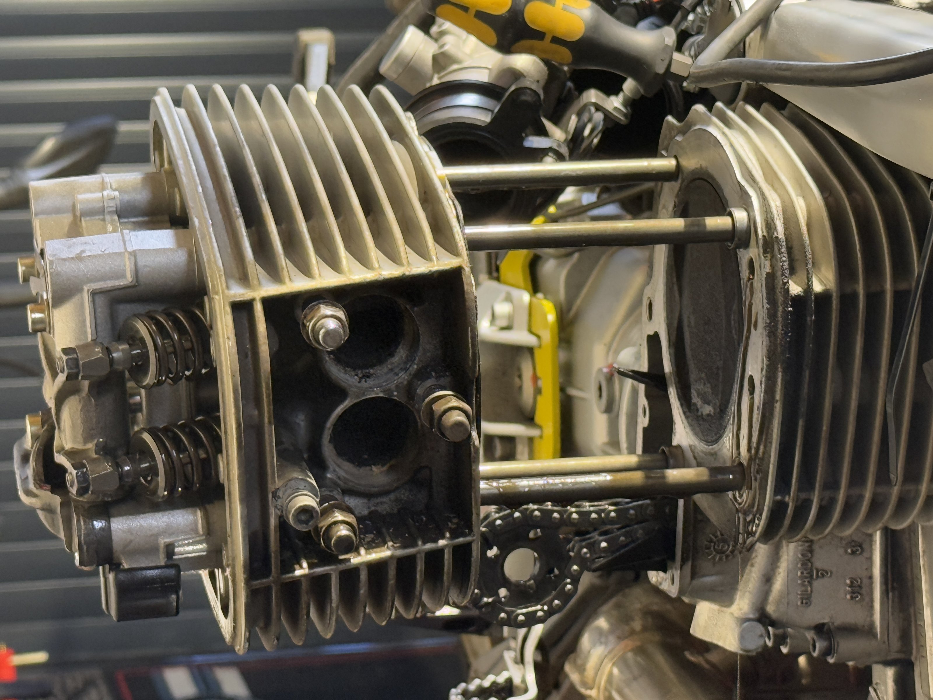Aufpassen, die Stehbolzen in den frühen Motorgehäusen neigen beim Wiederanziehen der Kopfschrauben dazu "weich" zu werden und nachzugeben. Dann ist die Freude extrem groß.