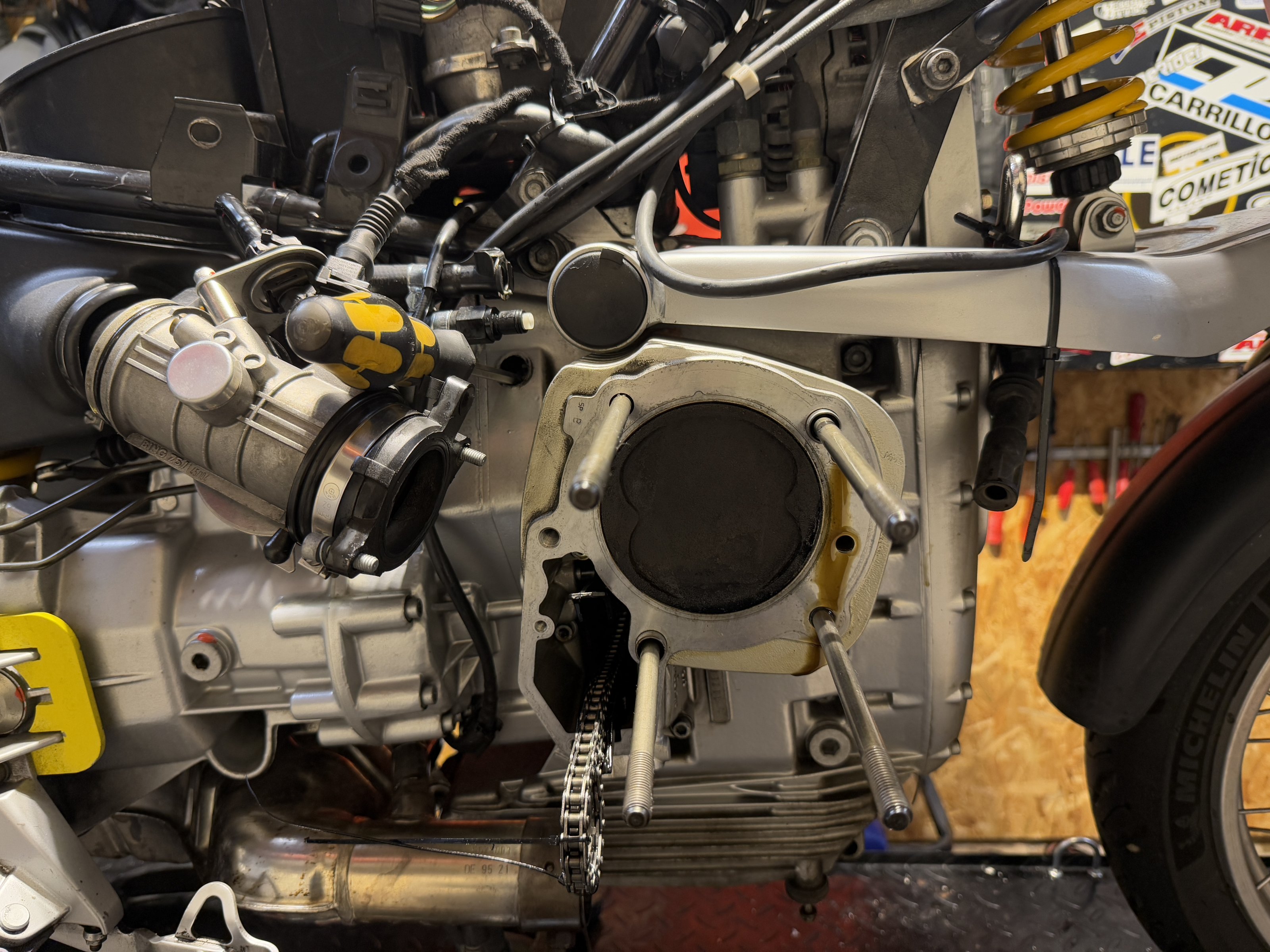 Ansonsten das übliche, neuer Steuerkettenspanner links, RS Krümmer, neue Reifen, neue Zündkerzen, Ventilspielkontrolle, alle Betriebsfüssigkeiten gewechselt und noch Synchronisiert - fertig 😀