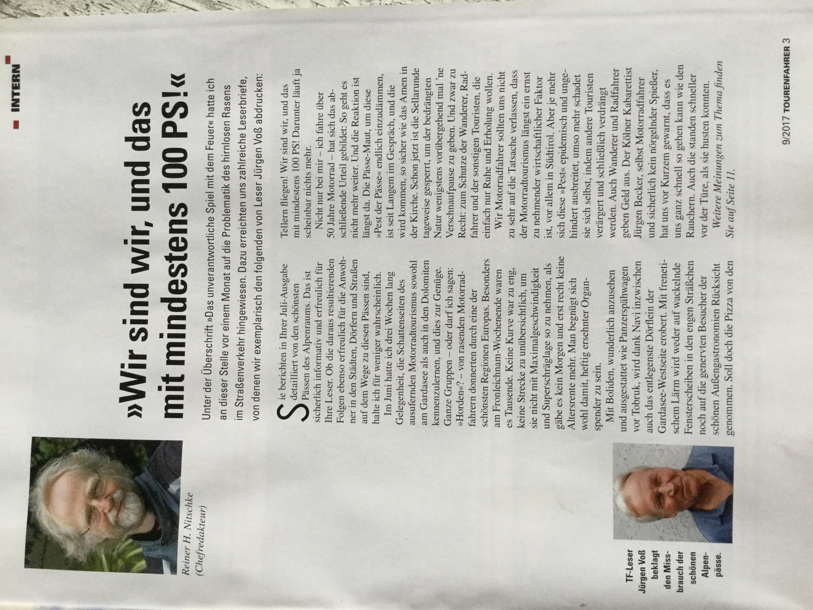 es es ist ja alles recht und schön und jedem Tierchen sein Pläsierchen.... Aber an der ganzen Diskussion ist schon was dran. Ich hab es schon mal gesagt, die Masse macht's. Siehe auch im Tourenfahrer Sept/2017 auf Seite 3.