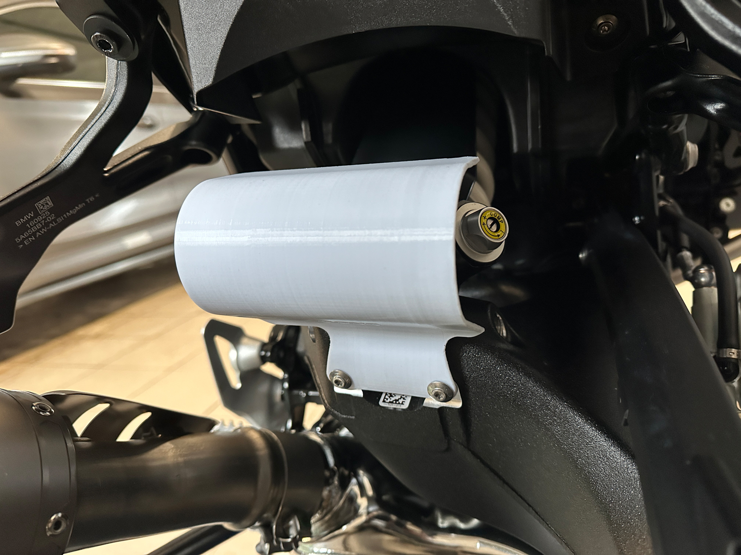 Schau mal folgendes an - die Idee war von mir, da ich, was robustes haben wollte und mir das nicht selbst drucken wollte aus Kunststoff, haben die Jungs echt gut umgesetzt: Federbein Ausgleichsbehälter Schutz BMW R12 G/S – Dakar Edelstahl ich bin dort aber ansonsten auch einfach normaler Kunde.