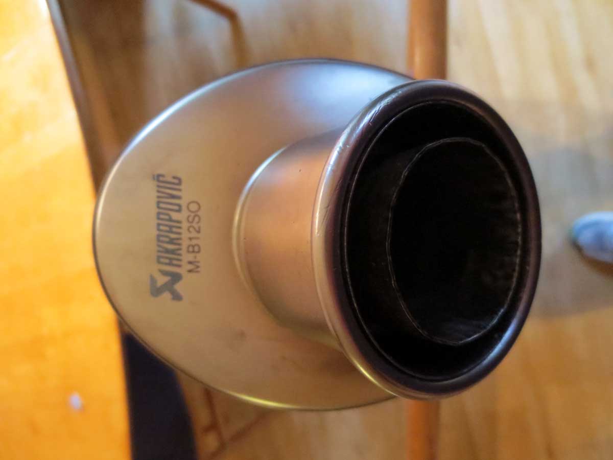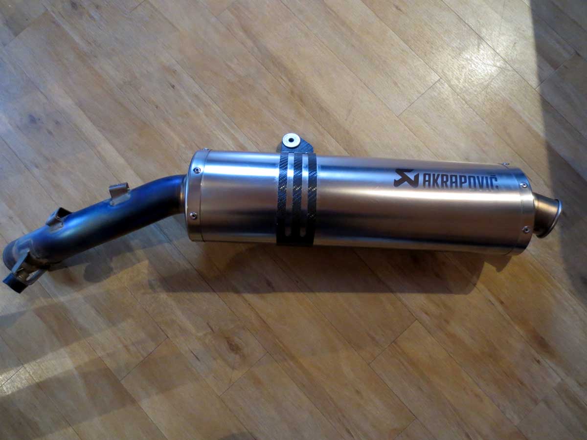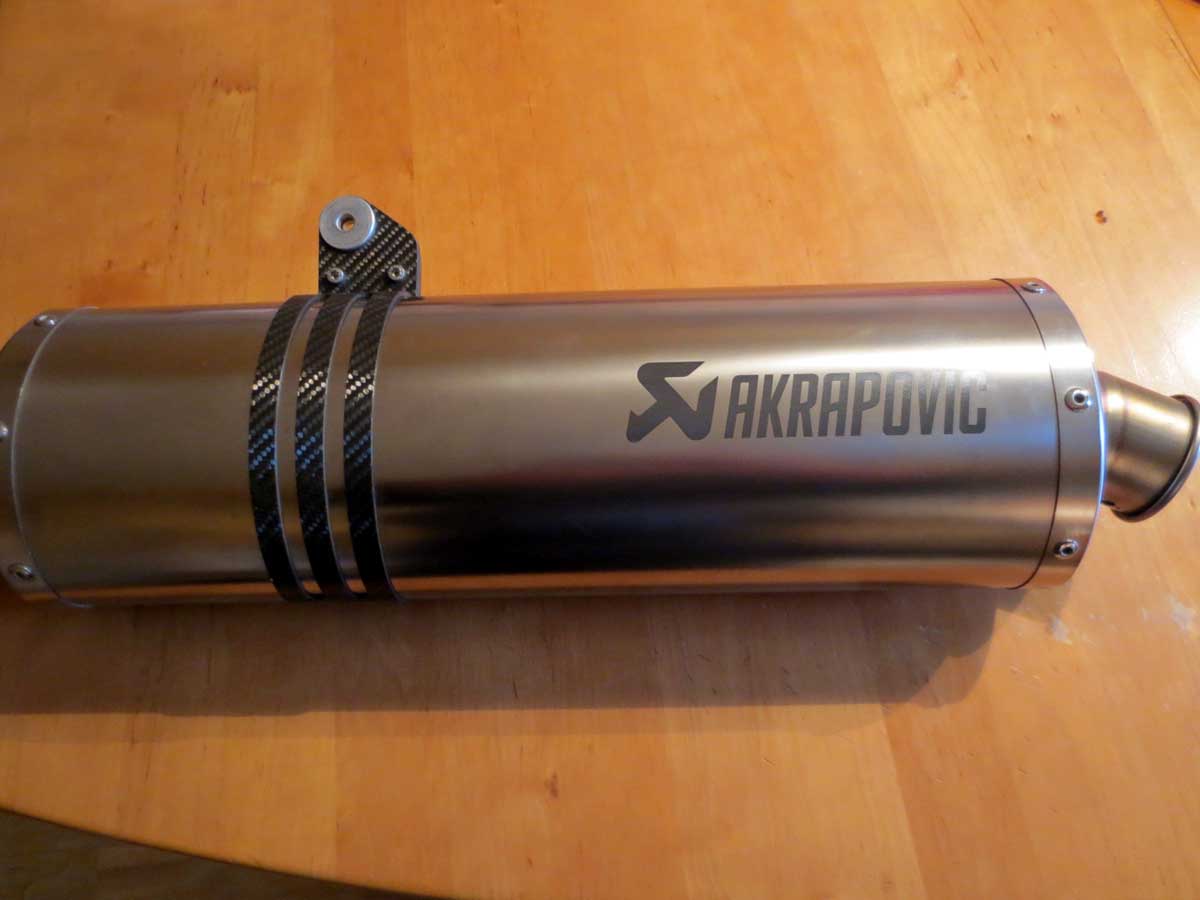 1 Akrapovic „slip on“ Auspuff Endschalldämpfer, gelasert, original BMW sehr guter Zustand, er sorgt dafür, dass das Drehzahlloch zwischen 4000 und 5000 Upm erheblich vermindert wird. (für GS Modelle 2004 – 2009) 375.- Euro