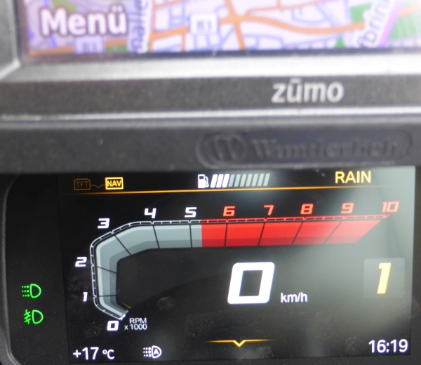 Wenn ich das zu Hause probiere, also Helm aufsetzen, Headset ein und Navi aufdrehe, dann verbindet es sich und Ansagen und Musik funktionieren.
