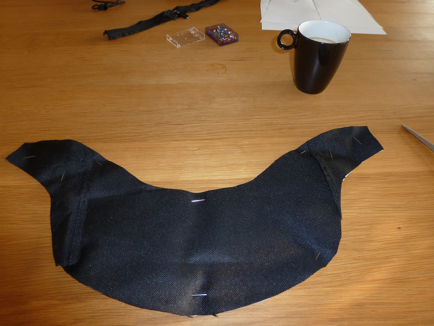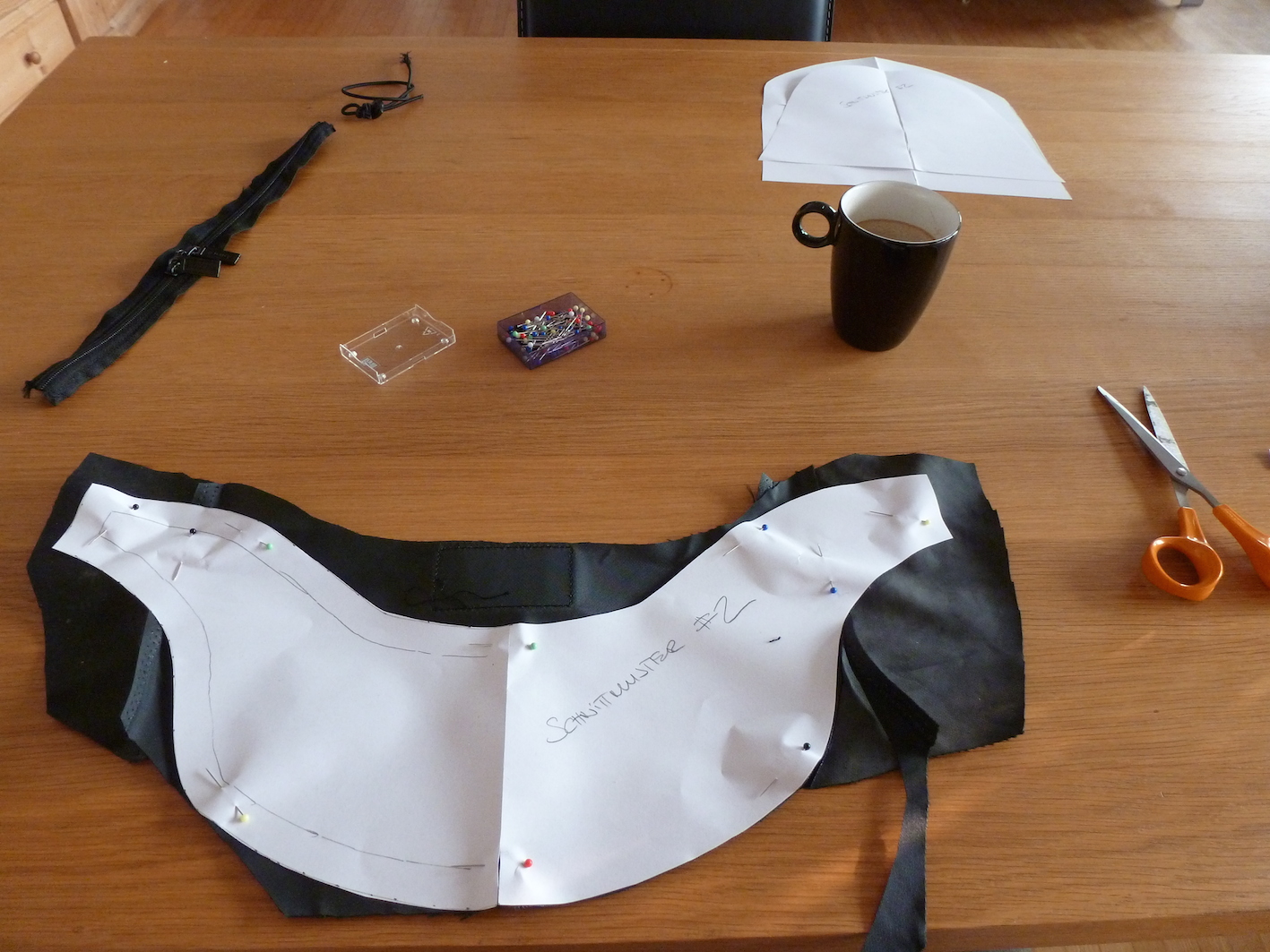Obs brauchbar wird steht in den Sternen. Aber eines ist schon jetzt klar. Falls das ein Erfolg sein sollte sprich ob es schön passen wird, dann werde ich besseren Stoff bestellen und alles noch mal schön mit Maschine nähen oder nähen lassen.